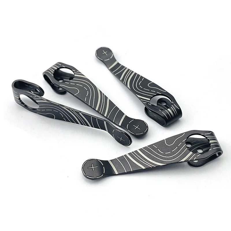 Clip de cuchillo de bolsillo de titanio con textura de contorno, Clips Kydex traseros, Clip de cintura para C81 C10 C11, piezas de modificación de cuchillo plegable Material: titanio