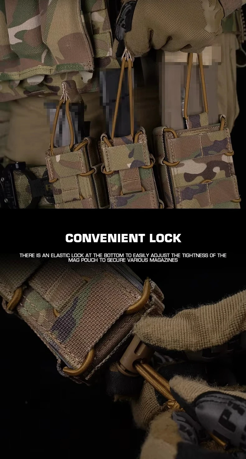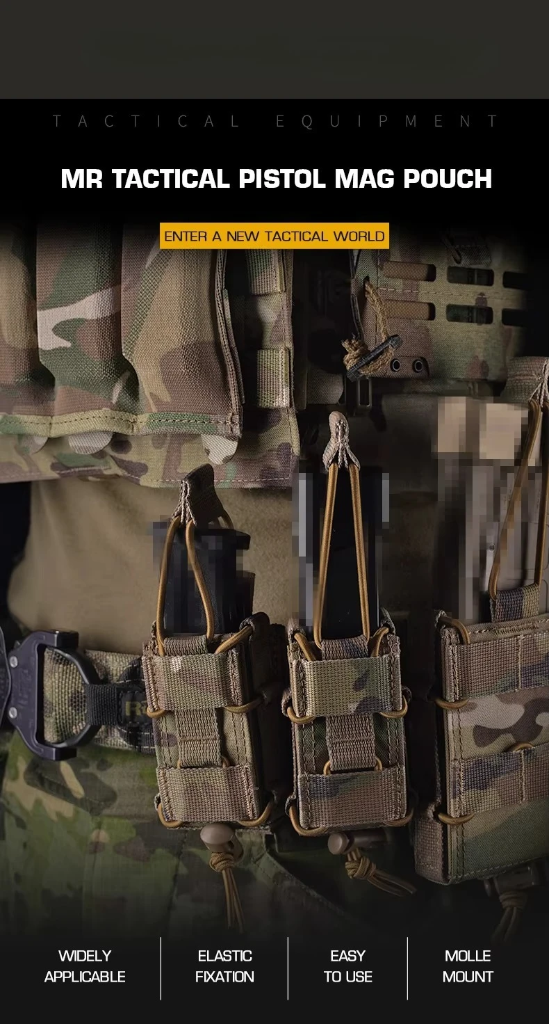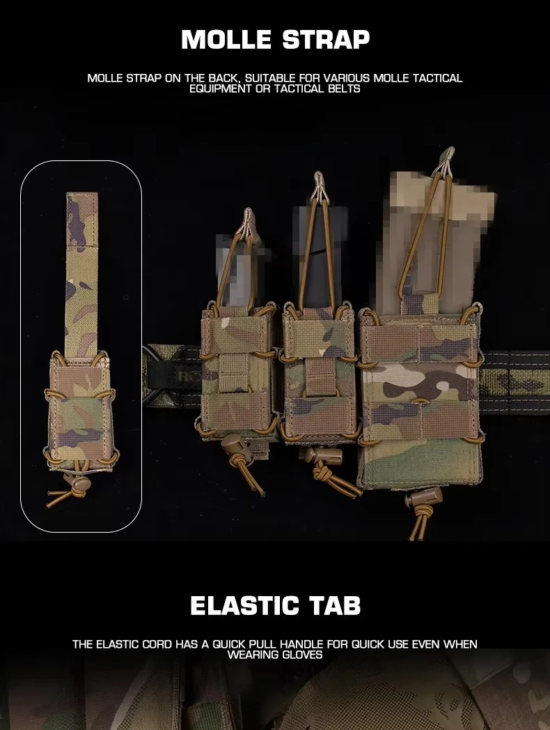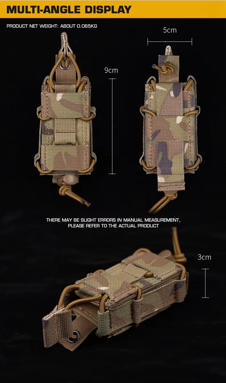 Descripción del producto Bolsa magnética de 9mm, soporte MOLLE de extracción rápida, Clip elástico para soporte de placaInformación del producto Artículo No.:MG-54 Escena aplicable: actividades en equipo, juegos al aire libre, accesorios de películas.