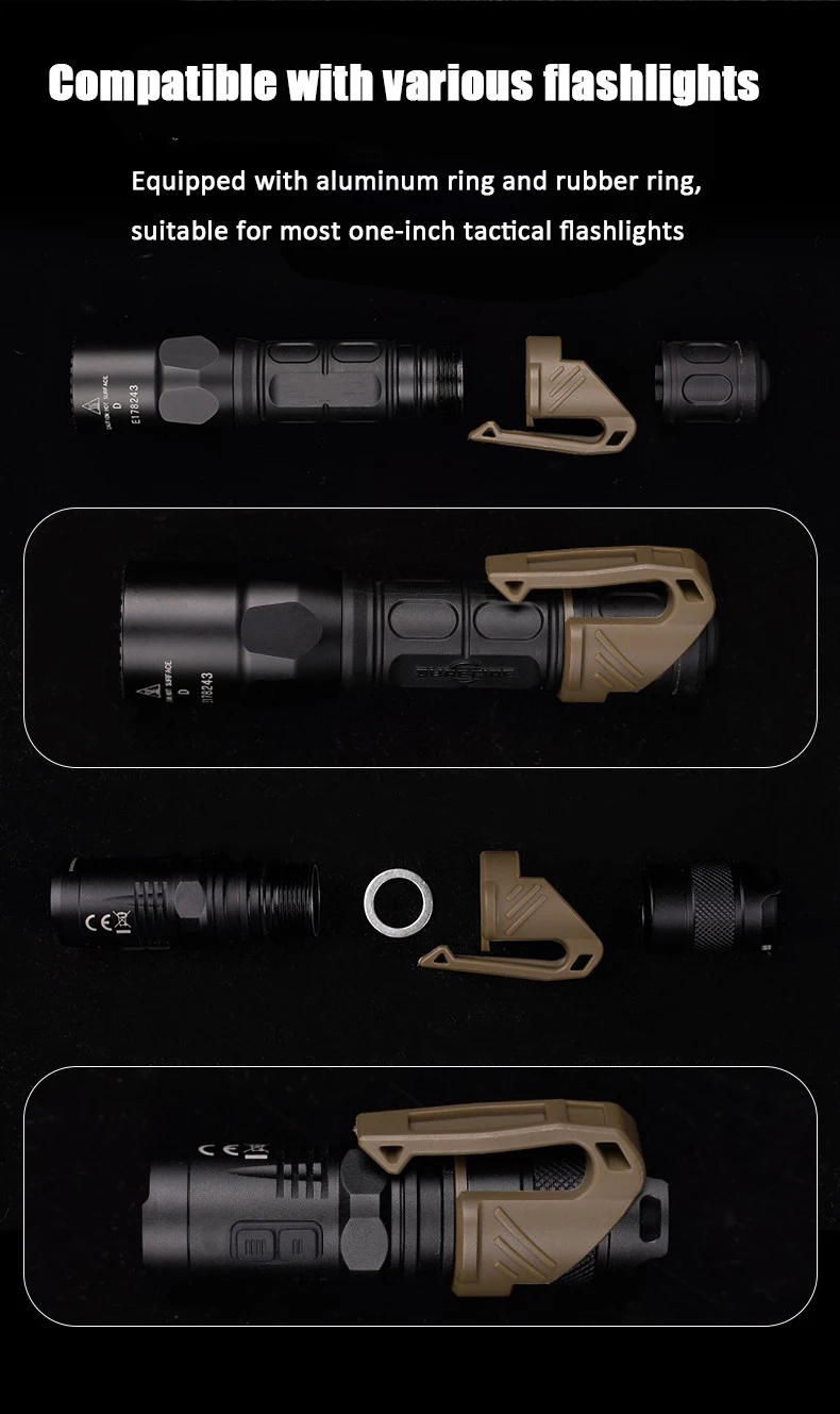 Clip de transporte para linterna táctica, Clip Compatible de bolsillo, soporte de antorcha táctica de 1 pulgada, Clip multiherramienta de retención MOLLE
