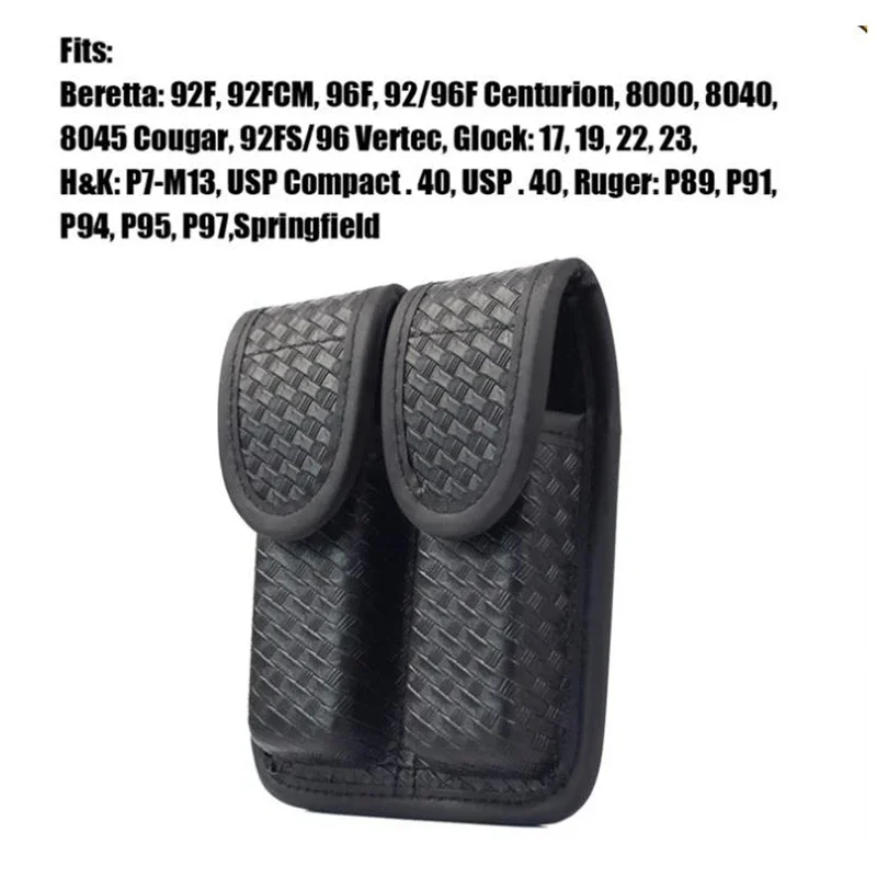Bolsa de revista doble Basketweave, bolsa de doble imán para pistola doble a presión, para cinturones de servicio de 2,25", se adapta a Glock 17, presilla para cinturón
