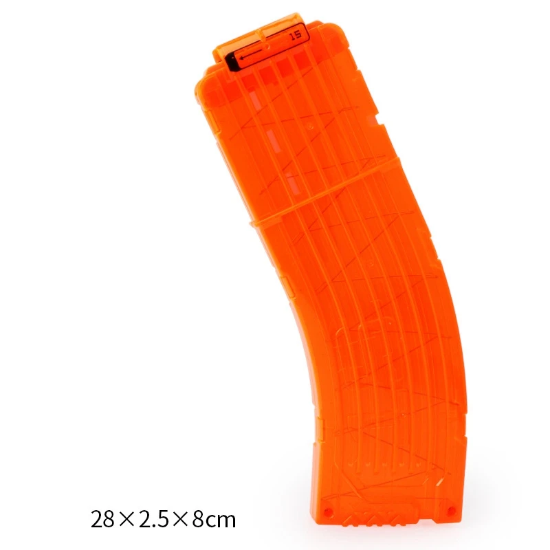 El clip para balas puede contener 15 balas de espuma o blanda, mejor para 14 balas.