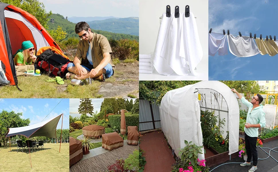 Usos: Adecuado para arreglar artículos del hogar, arreglar artículos de automóviles, marquesinas, lonas, manteles de sombra, sacos de dormir y otros artículos que deben agruparse. En el dosel y la lona de la tienda llueve durante mucho tiempo, ¡el borde fijo tira suavemente la lluvia hacia abajo verticalmente! Cuando los fuertes vientos hacen que el dosel se mueva, fije los bordes para que quede firme. No hay necesidad de anillos de fijación adicionales, ¡es muy conveniente arreglarlo donde desea arreglarlo!