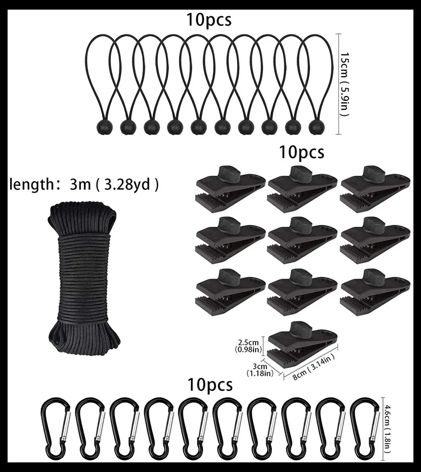 Nombre: Juego de clips para tienda de campaña con dosel