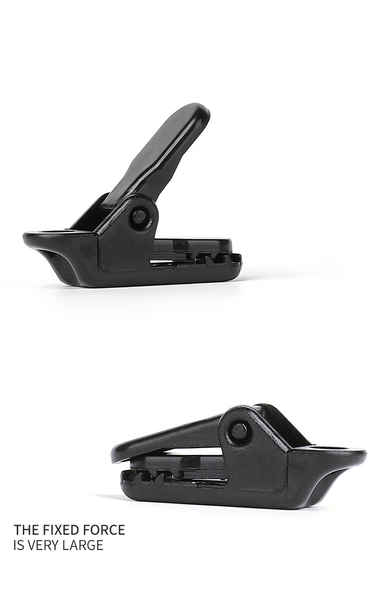 Características: un mini y práctico clip accesorio, que se puede usar con paracords de estándar militar para fijar marquesinas, carpas reforzadas, etc. El diseño sofisticado permite que los dientes se acoplen con mayor fuerza.