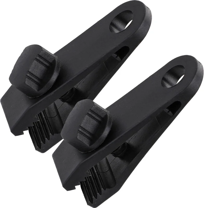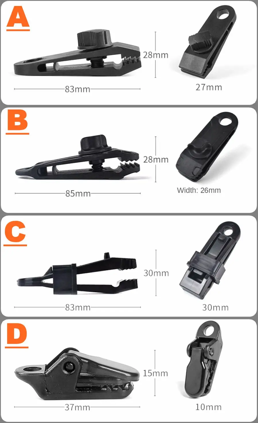 👍【Fuerte poder de agarra】: clips de lona resistentes diseñados con tornillos de pulgar en espiral ajustables, Boca de cocodrilo con dientes sostiene lonas mucho más estables.