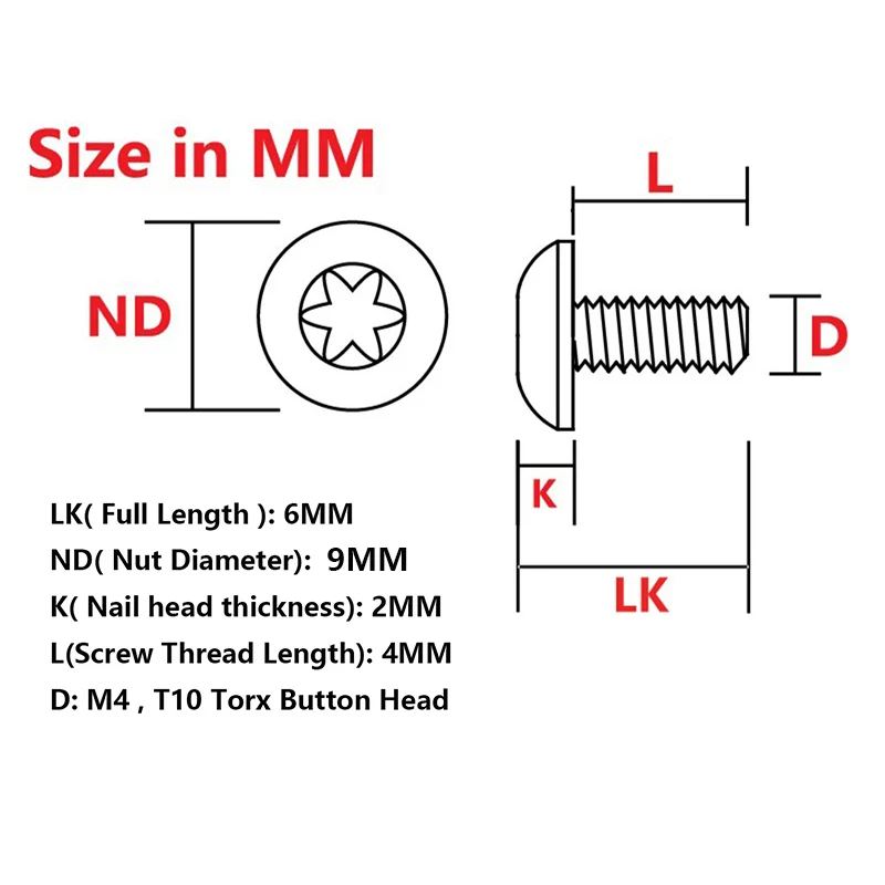 Rosca de tornillo M4, cabeza de botón Torx T10