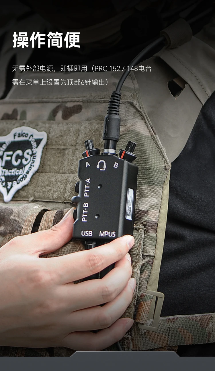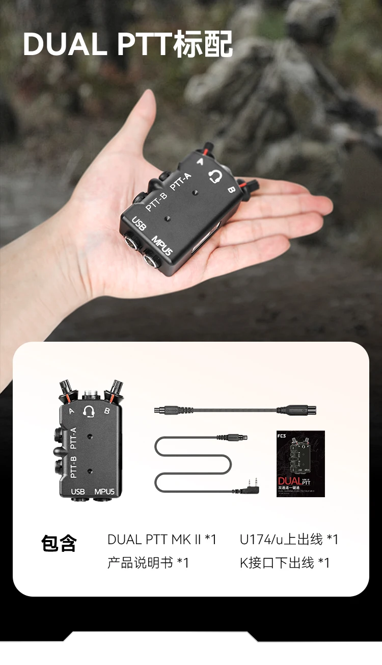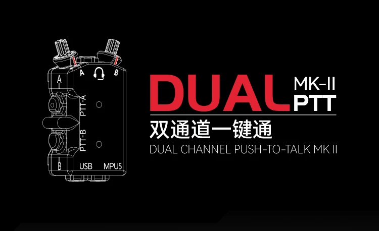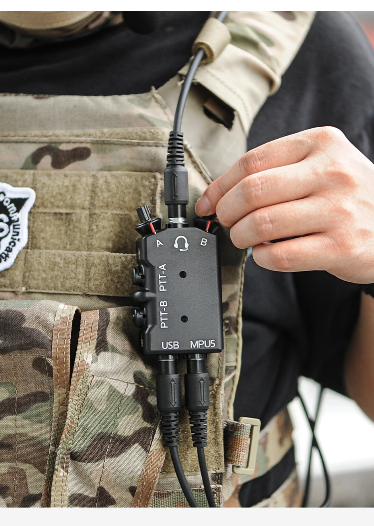 CNC Metal refinado M-P-U-5 D-U-A-L Walkie Talkie PTT Auriculares tácticos PTT de doble paso