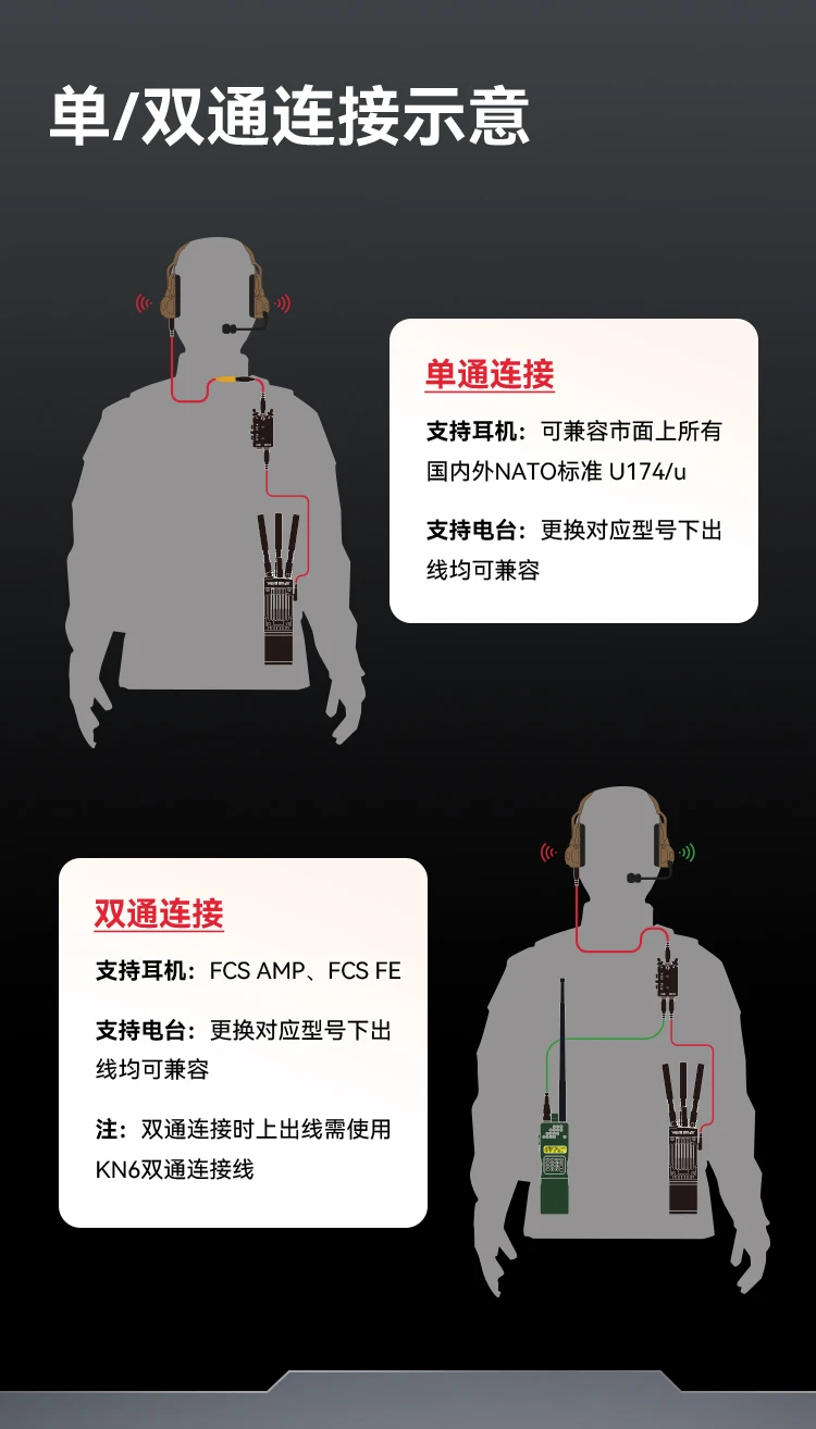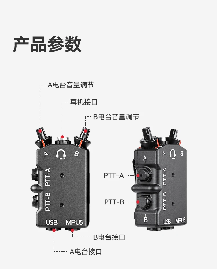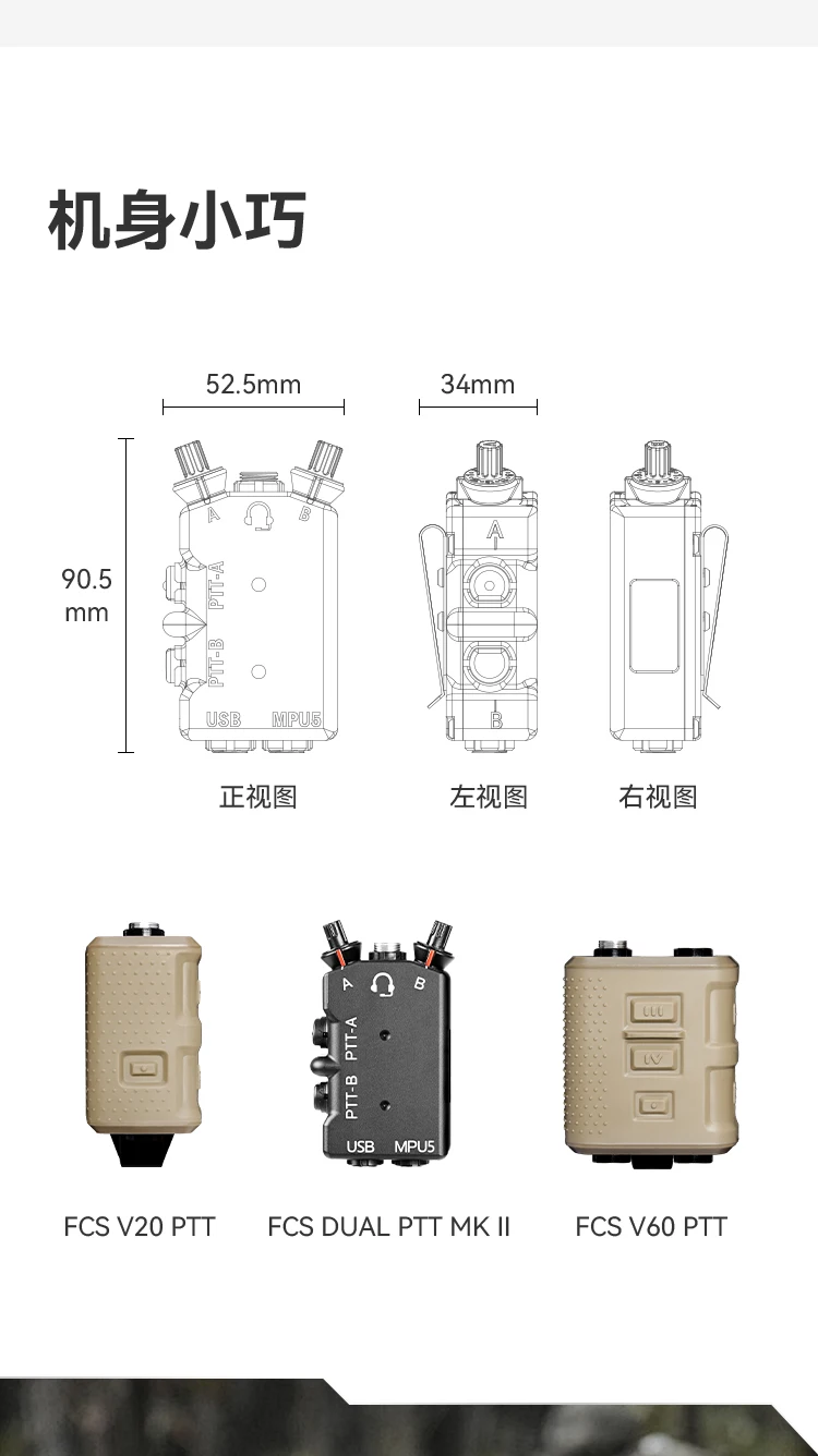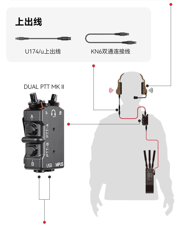 CNC Metal refinado M-P-U-5 D-U-A-L Walkie Talkie PTT Auriculares tácticos PTT de doble paso
