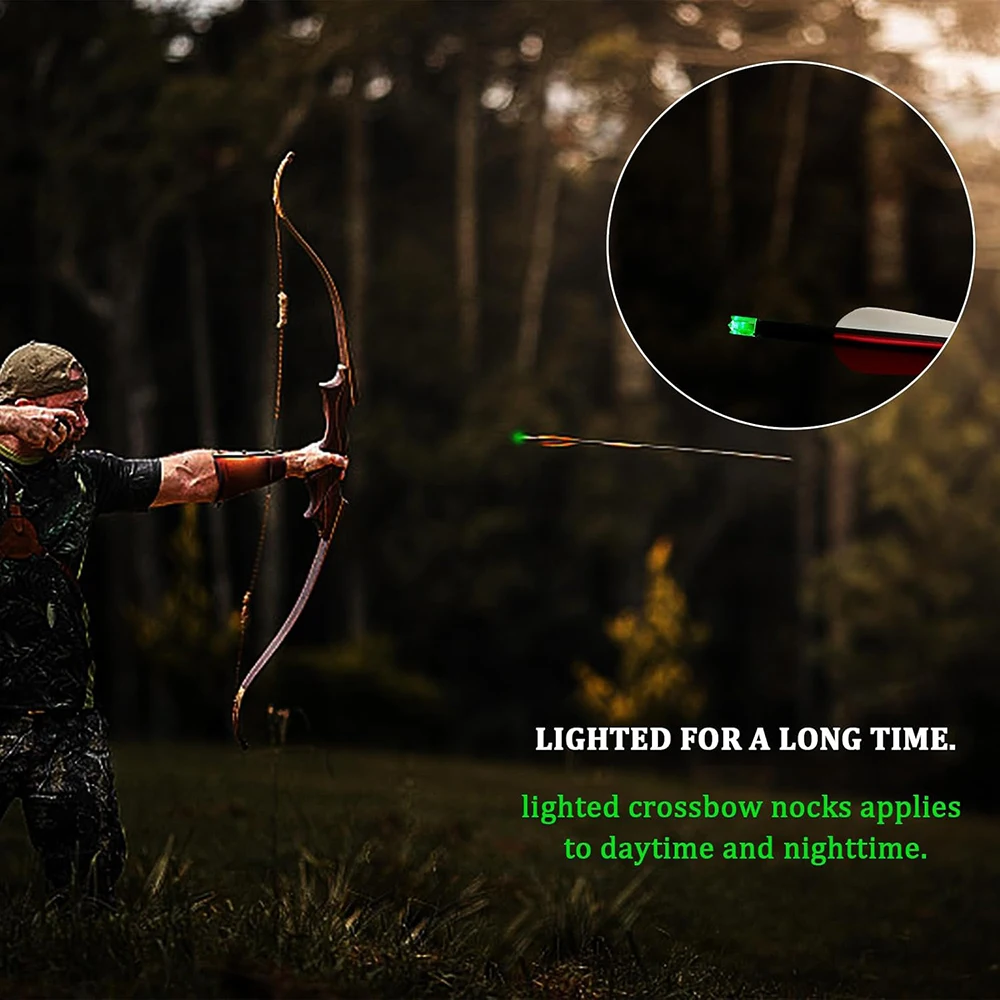 Estas balladas están diseñadas con puntas de flecha luminosas para mejorar la visibilidad y precisión de las flechas.La fuente de luz LED puede emitir luz continuamente durante 36 horas, lo que le permite encontrar fácilmente su flecha en la oscuridad.