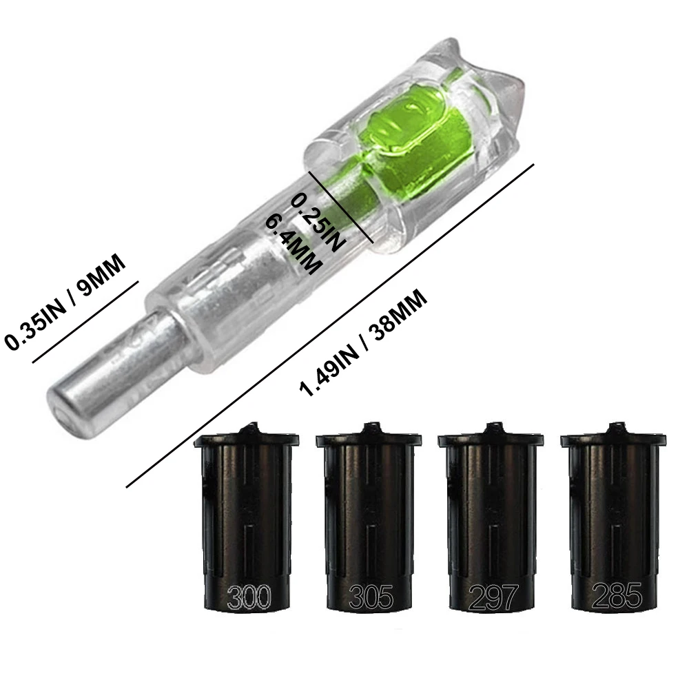 Un paquete de 1 portalámparas de ballesta (el color se puede elegir según sus preferencias personales), con 4 diámetros interiores diferentes (.285/.297/.300/.305) de balladas, que se pueden utilizar para varios ajustes de flecha.