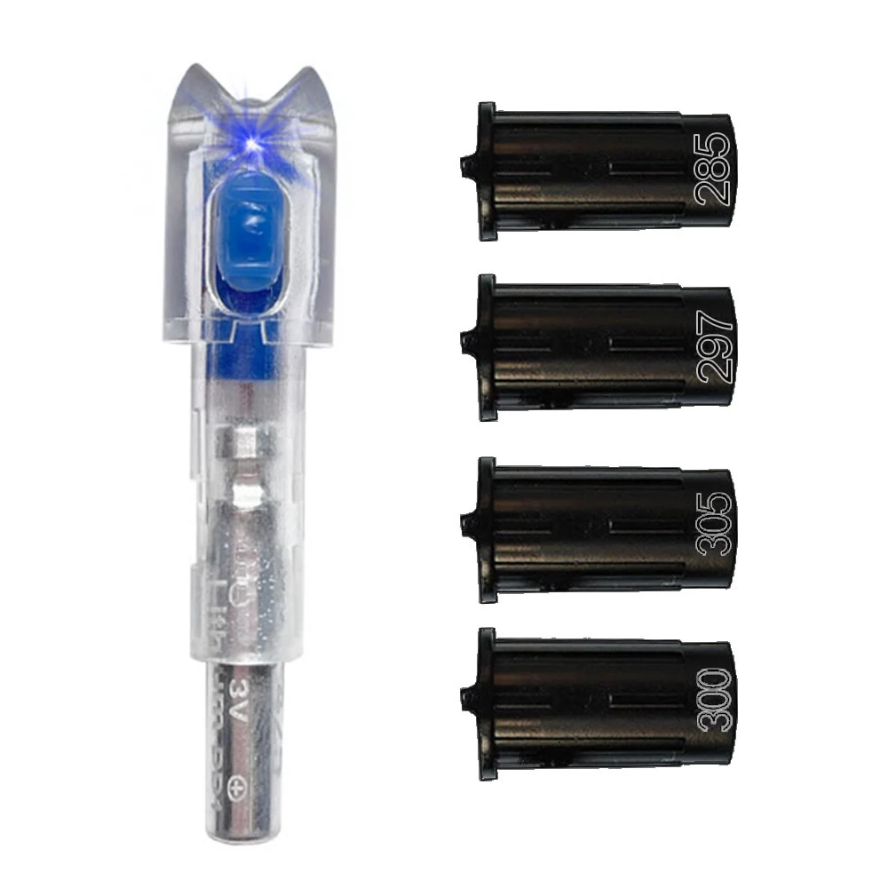 Golpes iluminados para ballesta de tiro con arco para pernos con casquillos de.285”/.297”/.300”/.305” Luz de señal LED trasera de flecha Rojo Verde Azul Amarillo