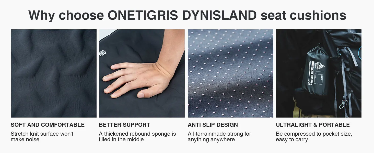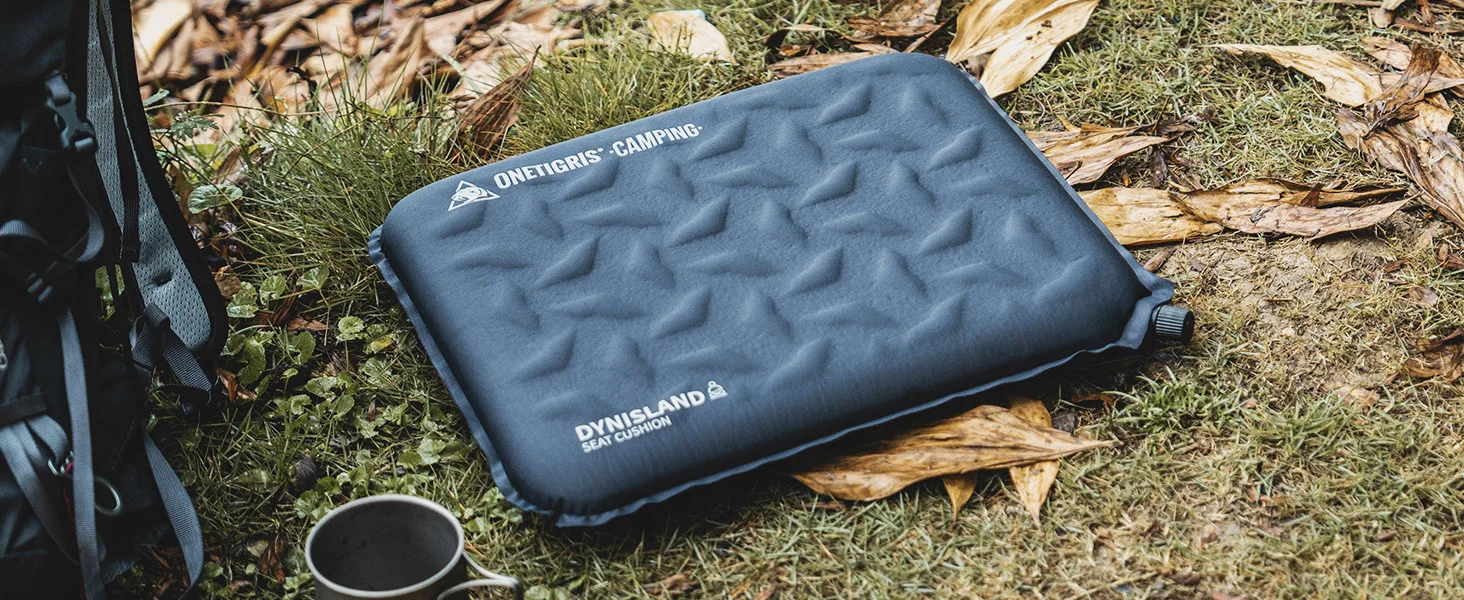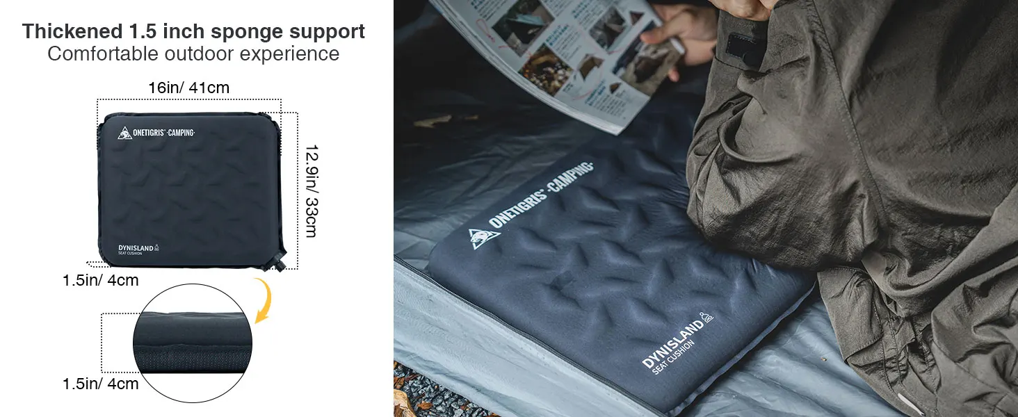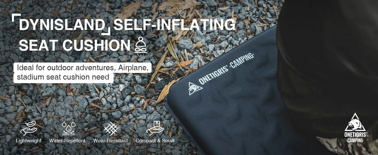 OneTigris Dynisland Inflatable Seat Cushion Lightweight Self-Inflating Memory Foam Seat Cushion for Stadium Camping, Bleachers, Airplane Travel, Waterproof Portable Seat Cushion Chair Pad