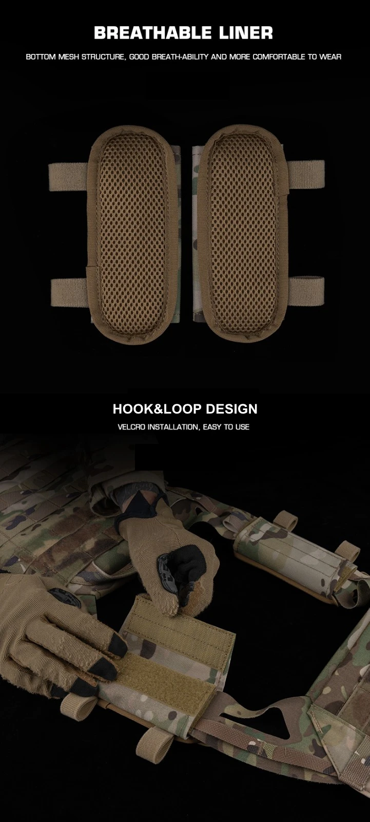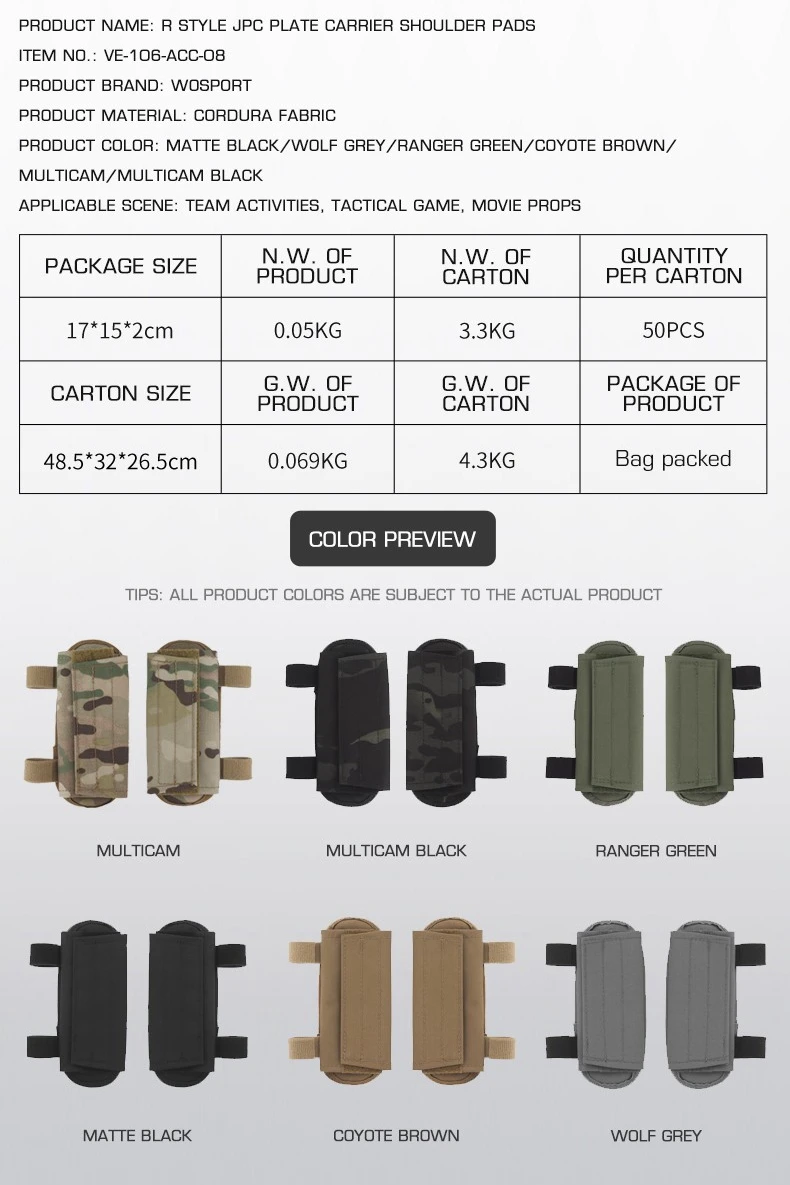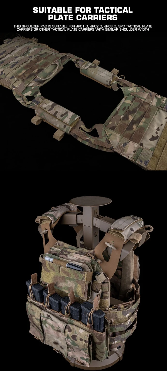 Esta hombrera se adapta a JPC1.0, JPC2.0, JPC3.0, chaleco táctico SPC u otro chaleco táctico con un ancho de hombro similar.