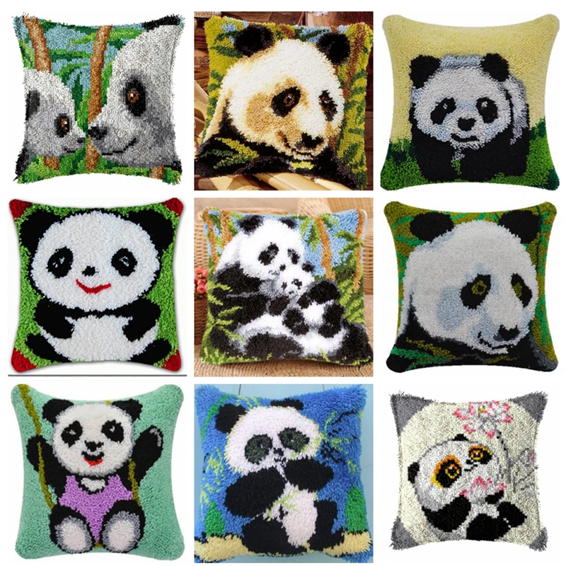 Cojín de Panda, paquete de botones Smyrna, gancho de pestillo, almohada bordada, Foamiran para almohada de costura, juego de bordado