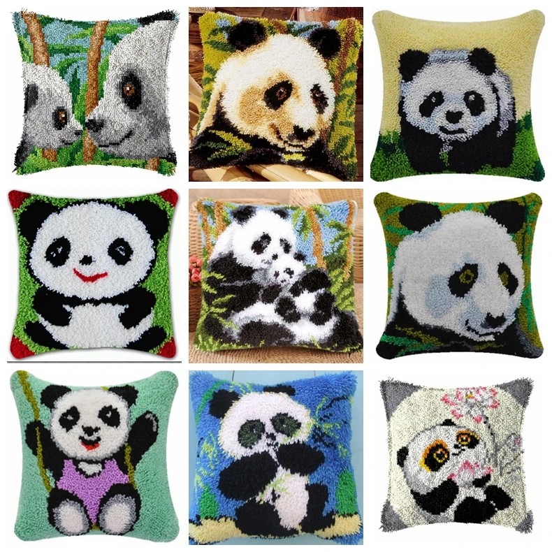 Cojín de Panda, paquete de botones Smyrna, gancho de pestillo, almohada bordada, Foamiran para almohada de costura, juego de bordado