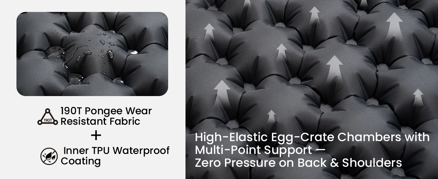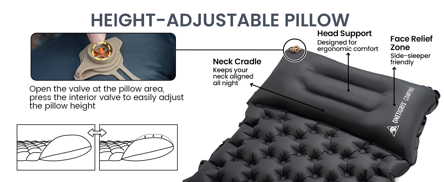Equipo de camping OneTigris| Almohadilla para dormir BLACKCRYSTAL