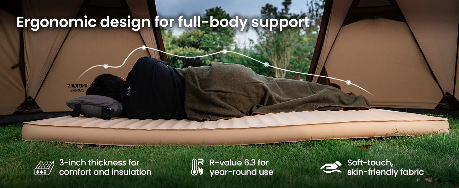 Ideal para: acampar, hacer picnic, hacer trekking, hacer caminatas, viajes de pesca, uso en interiores y exteriores, y viene con un kit de reparación de parches 3M.