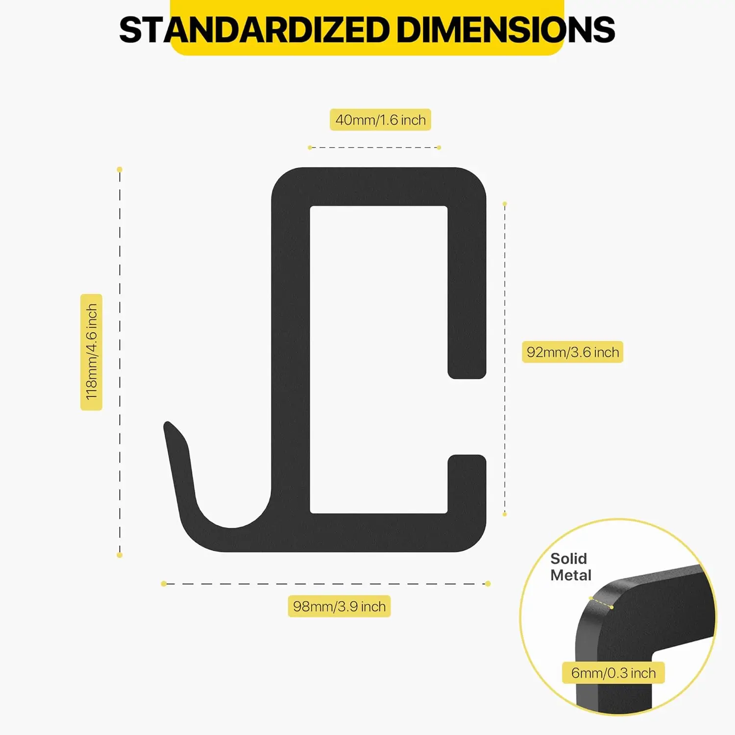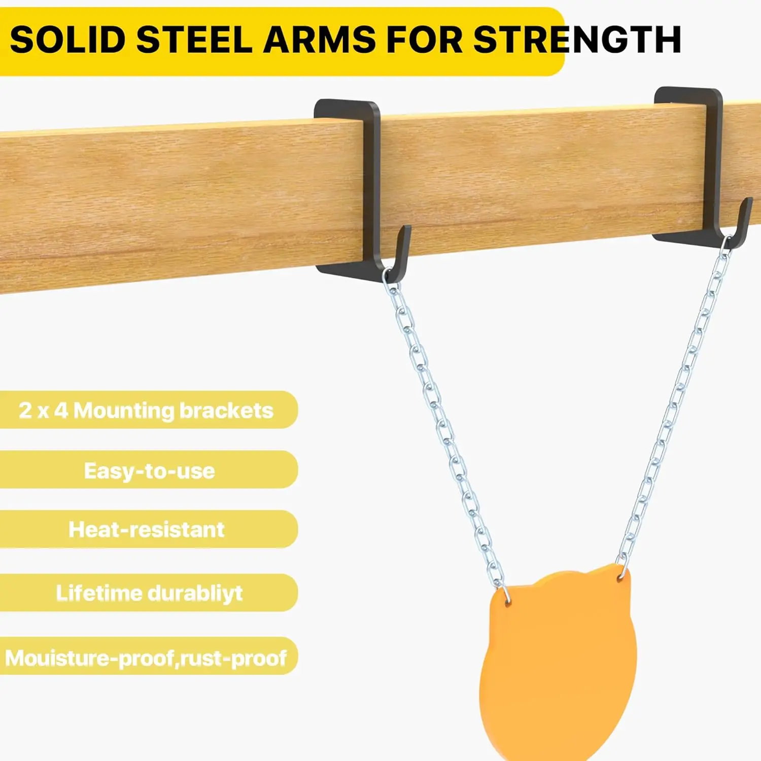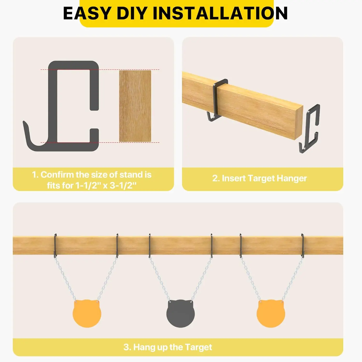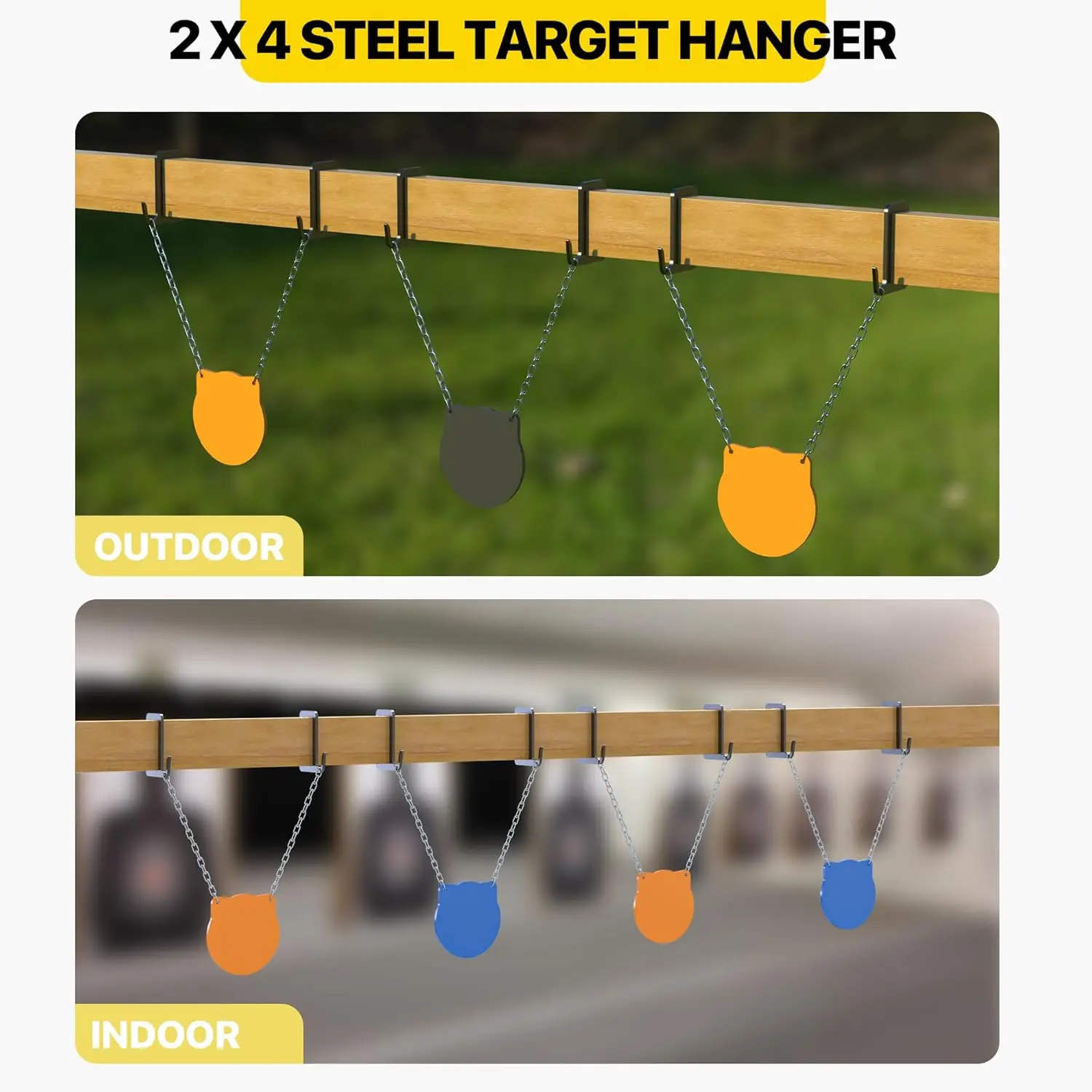 2. 【Se ajusta a través de un poste de madera normal de 2x4】 El colgador está diseñado en forma cuadrada, con dimensiones interiores de 3,6 pulgadas/9,2 cm de largo, 1,57 pulgadas/4 cm de ancho y un grosor de 6 mm.Estas perchas están hechas para pasar una estructura de tablero de tiro de 2x4 (real 1-1/2" x 3-1/2")).Solo recuerda que el gancho abierto está hacia lejos del tirador.Eso evitará que el anzuelo se dañe o se dispara. Te permite disfrutar de la emoción de disparar con más abandono.(Mida el tamaño de la madera que está utilizando antes de comprar)