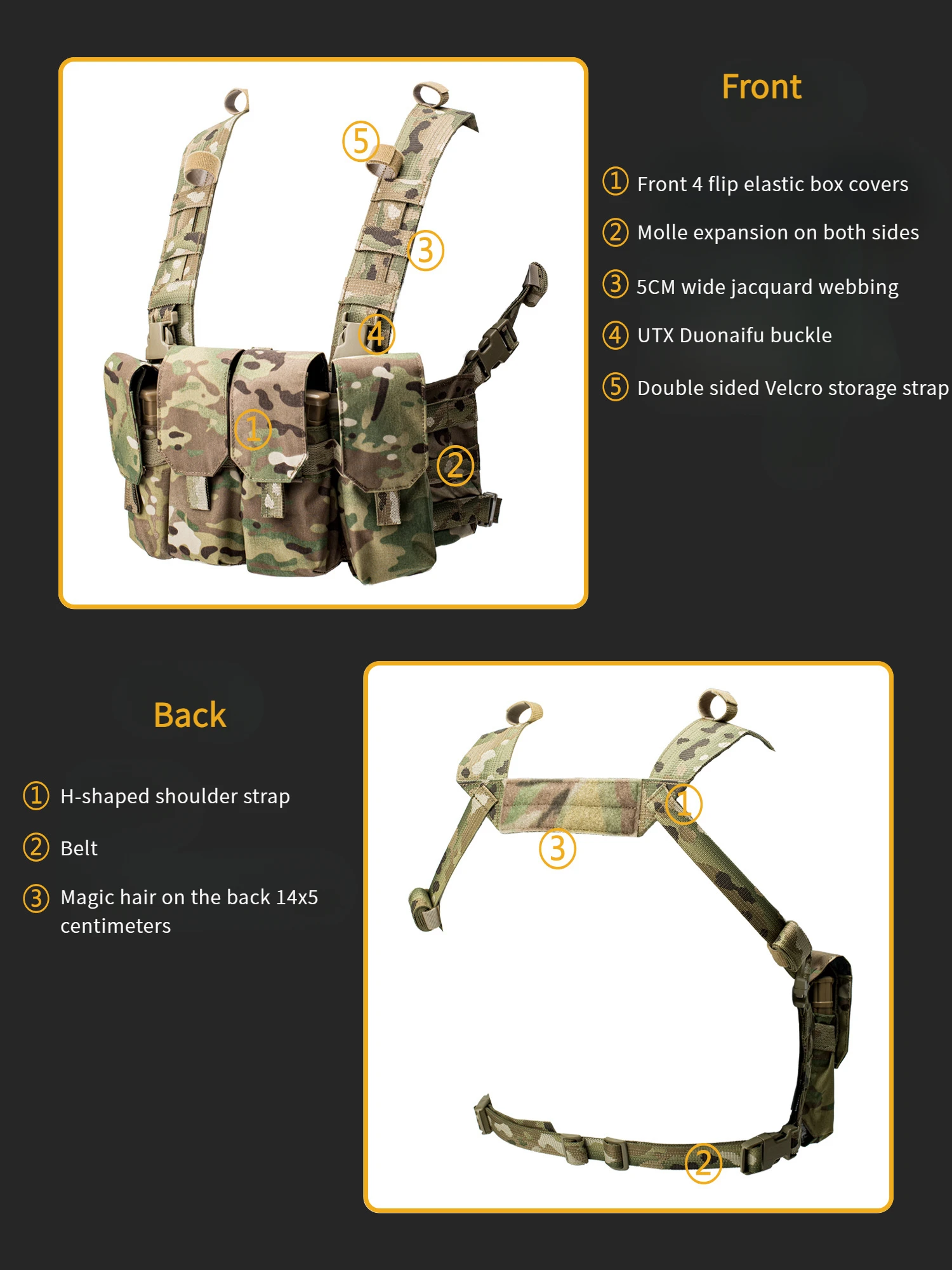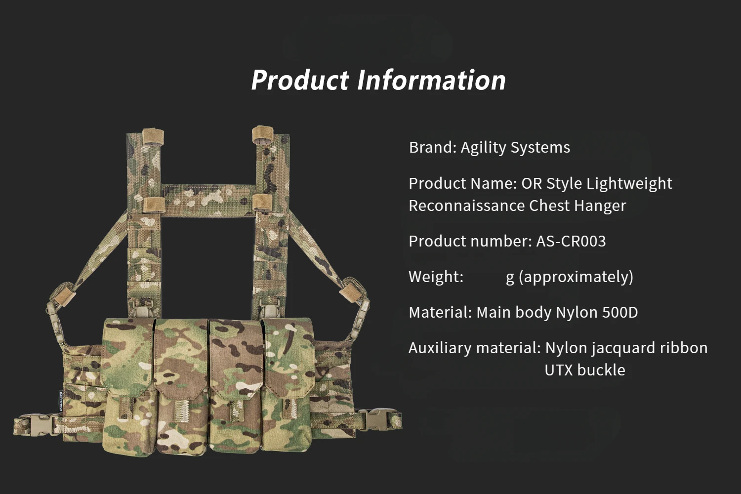 Colgador de pecho táctico ligero, sistema inteligente o estilo, Compatible con camuflaje 7,64, 5,45, 500D