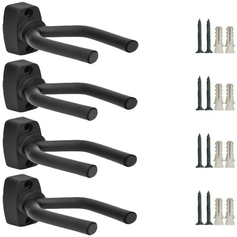 - -Soporte de montaje en pared con gancho para guitarra, 4 paquetes, cada uno más 2 tornillos y almohadillas de goma, 2 piezas de celuloide, 0,5mm, púas de color aleatorio