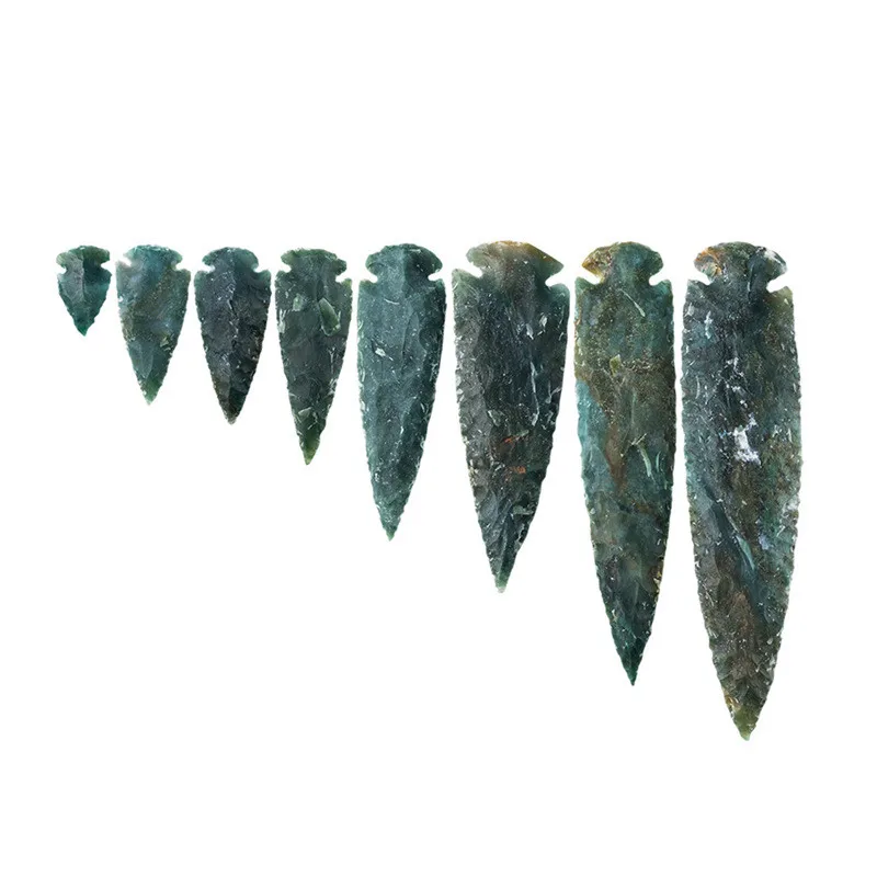 Esta punta de flecha de piedra está hecha de ágata azulada natural y está hecha a mano para restaurar el estilo de una lanza original.Es un artículo decorativo y coleccionable único: