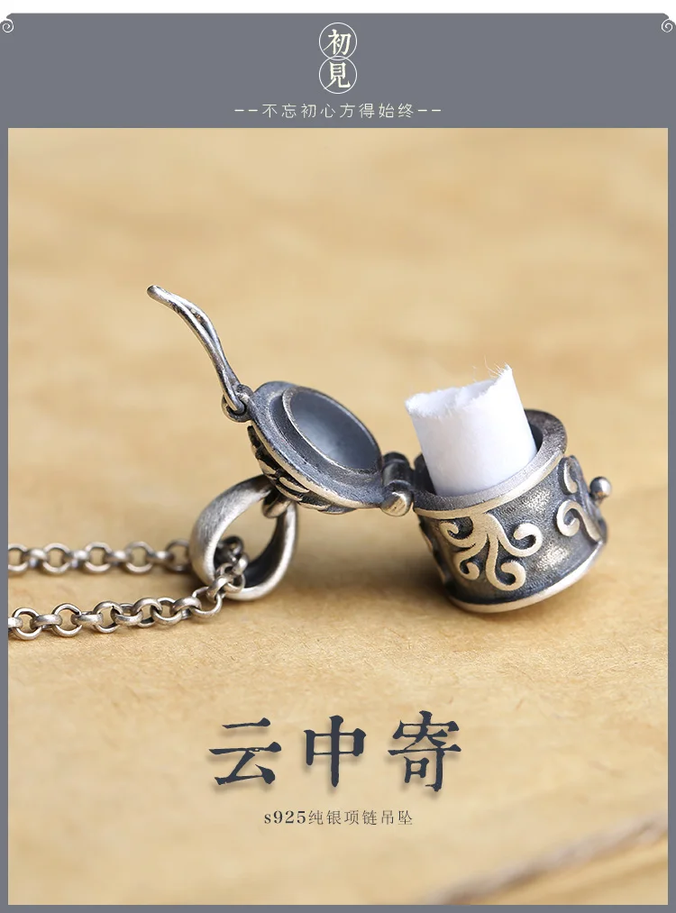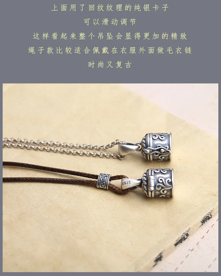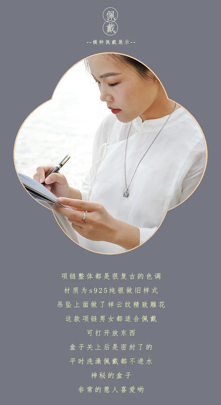 Todo el collar es un material de tono muy Retro Para plata de ley s925 para hacer colgante de estilo antiguo sobre las nubes hacer tallado delicado este collar es adecuado para que los hombres y las mujeres lo usen puede abrir la caja cerrada es sellado después de la ropa de baño habitual no están en la caja misteriosa de agua es muy popular