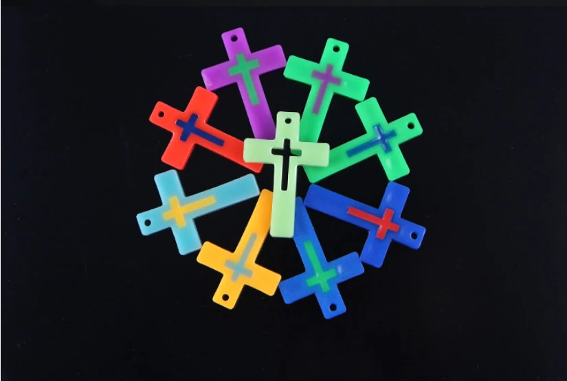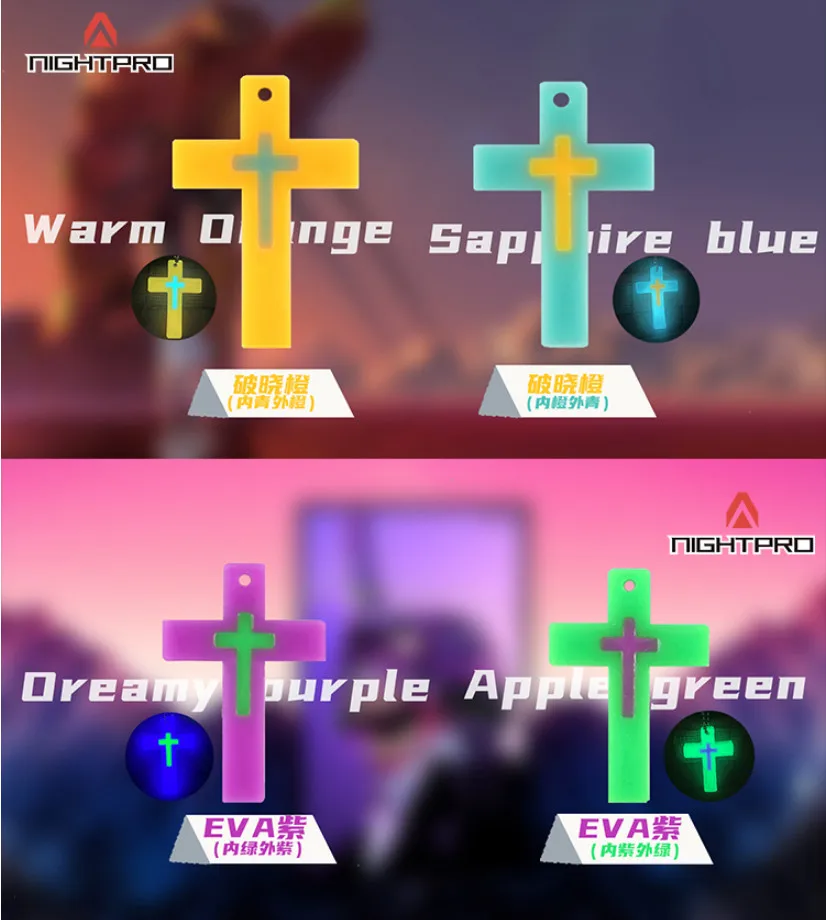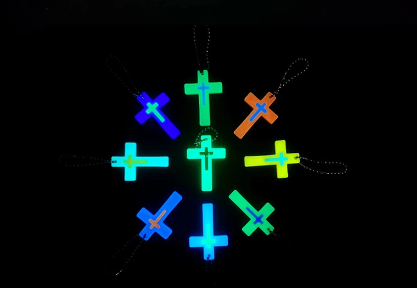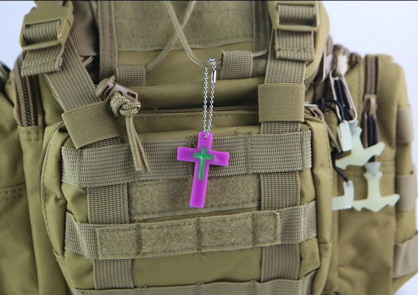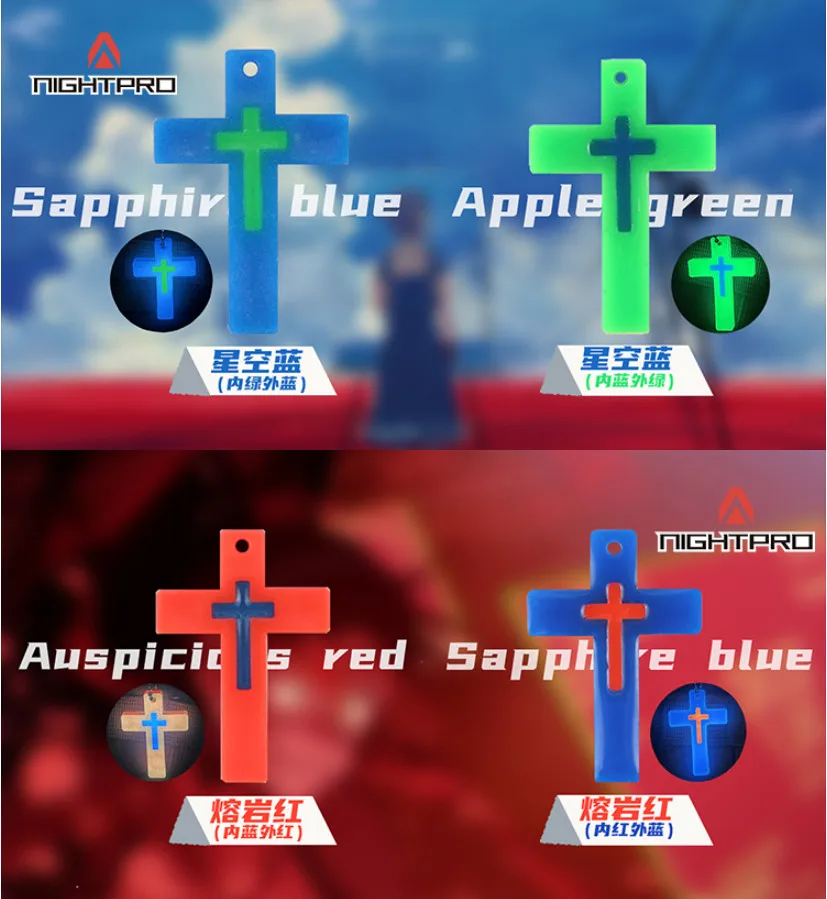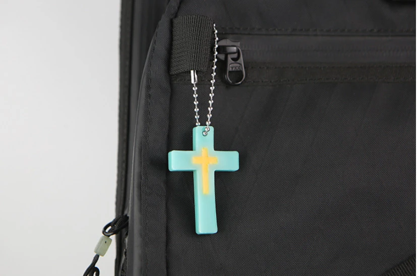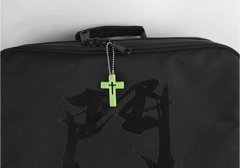 Colgante de Cruz con cremallera luminosa de dos tonos, llavero de resina de cruz sagrada, mochila de contraste, bolso cruzado, decoración de ropa