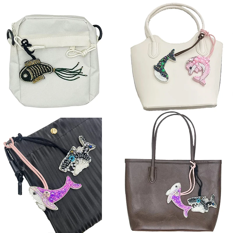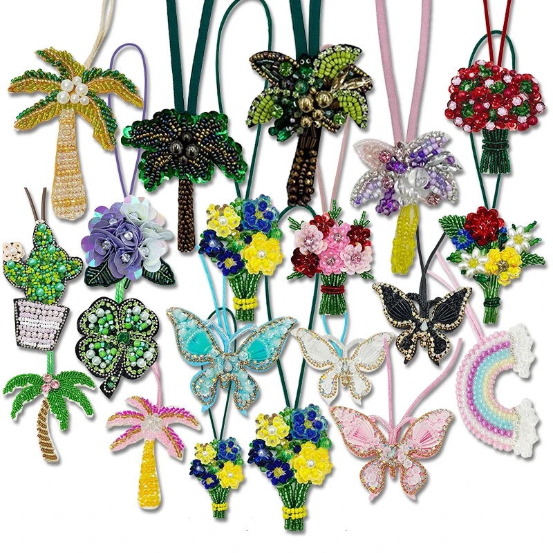 Colgante de mariposa de flores de árbol de coco 3D, colgante decorativo hecho a mano con cuentas de diamantes de imitación, cordón DIY, parche colgante para mochila