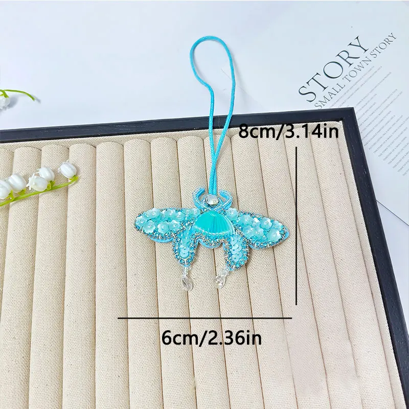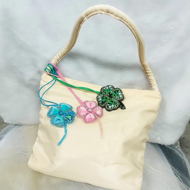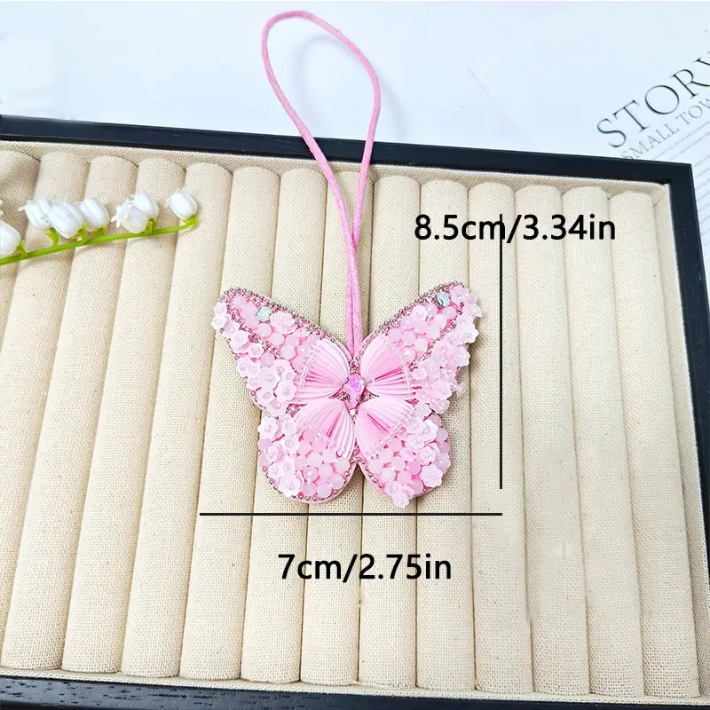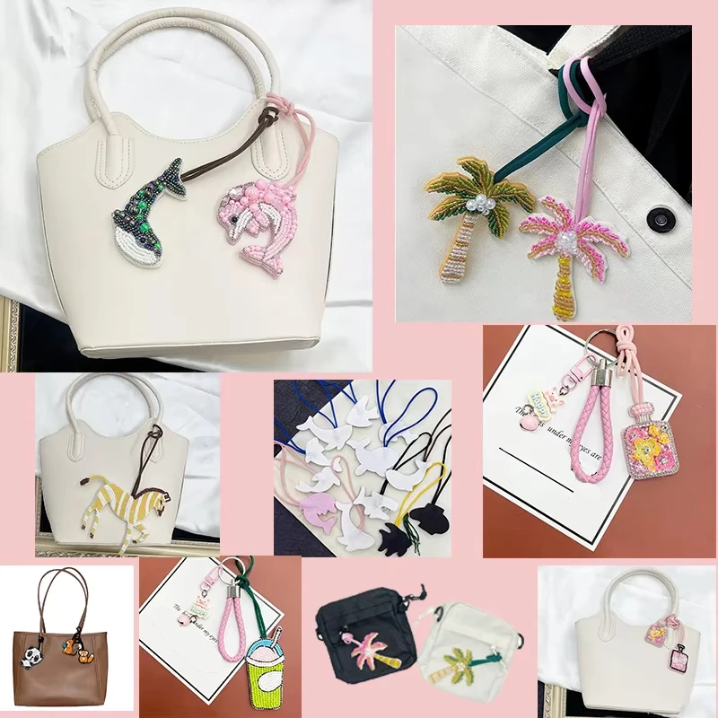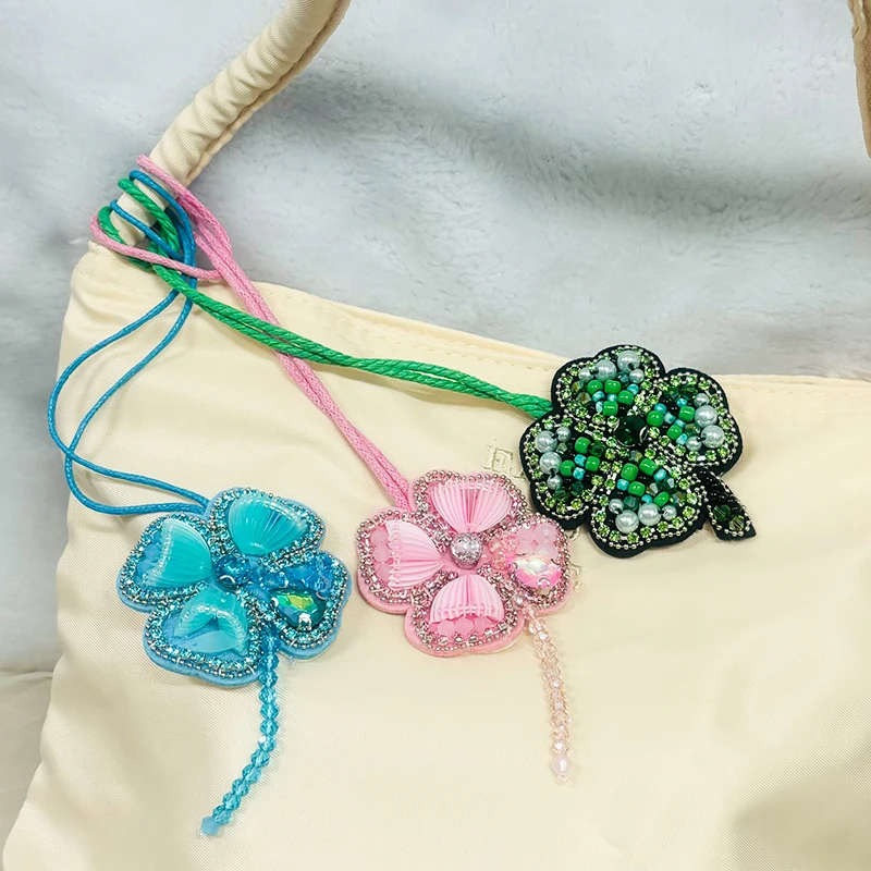 Colgante de parche con cuentas hecho a mano, lentejuelas, diamantes de imitación, mariposas, flores, concha, perlas, borlas, bolso hecho a mano, mochila, colgante 3D DIY