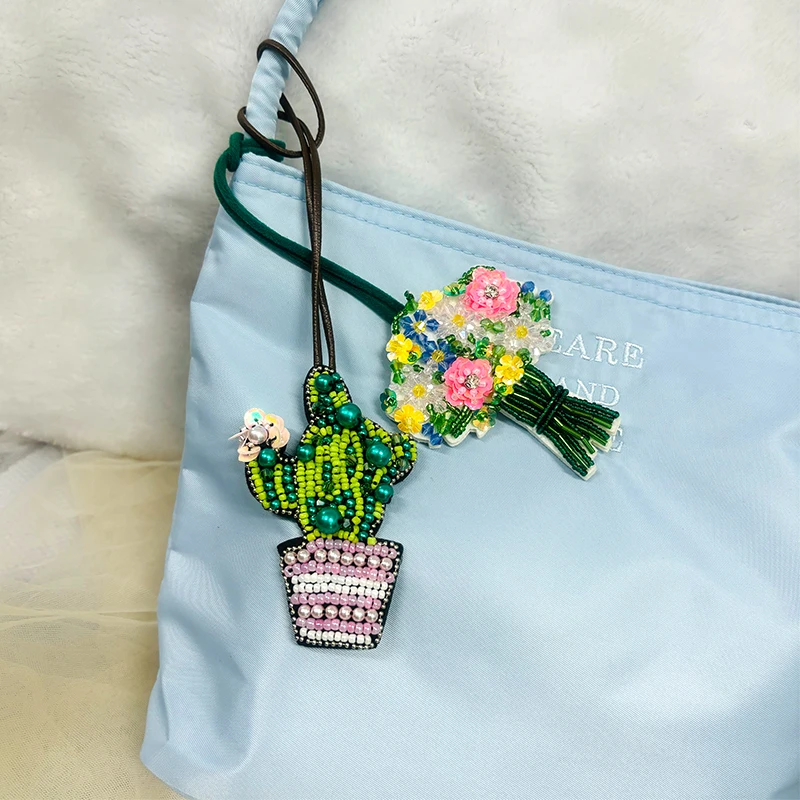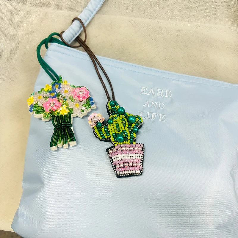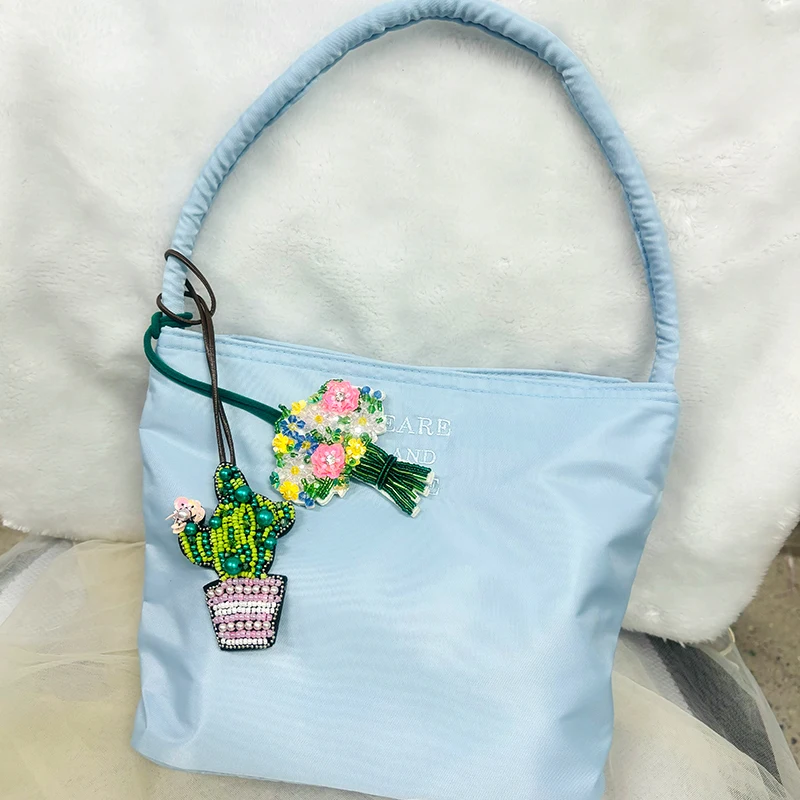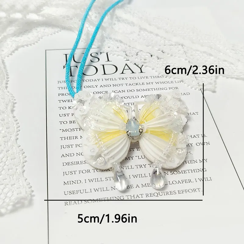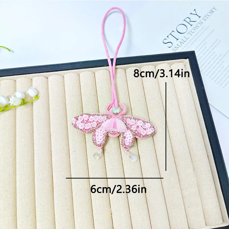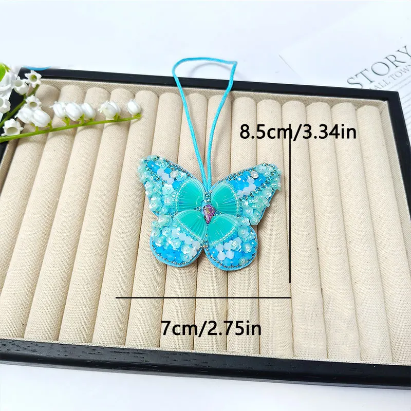 Colgante de parche con cuentas hecho a mano, lentejuelas, diamantes de imitación, mariposas, flores, concha, perlas, borlas, bolso hecho a mano, mochila, colgante 3D DIY