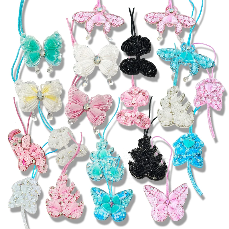 Parche hecho a mano con cuentas, colgante de lentejuelas, diamantes de imitación, mariposas, flores, concha, perlas, borlas, bolso hecho a mano, mochila, colgante 3D DIY