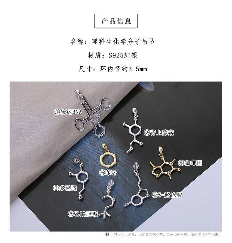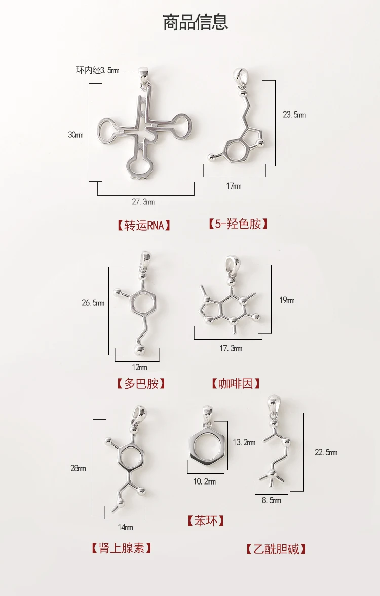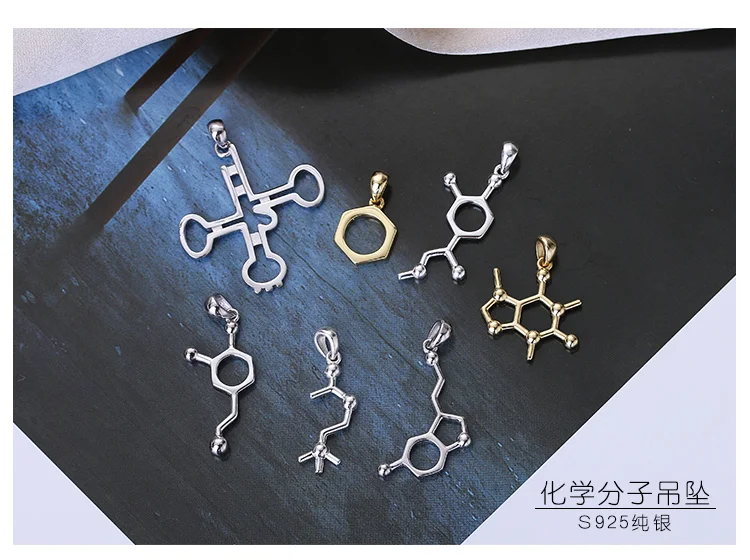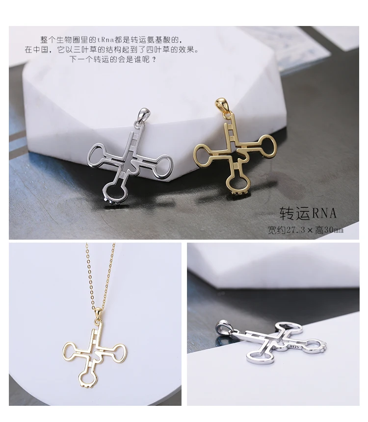 Colgante de plata de ley S925 para estudiantes de ciencia, colgante individual con personalidad, molecular química, transferencia de RNA, diseño creativo de nicho