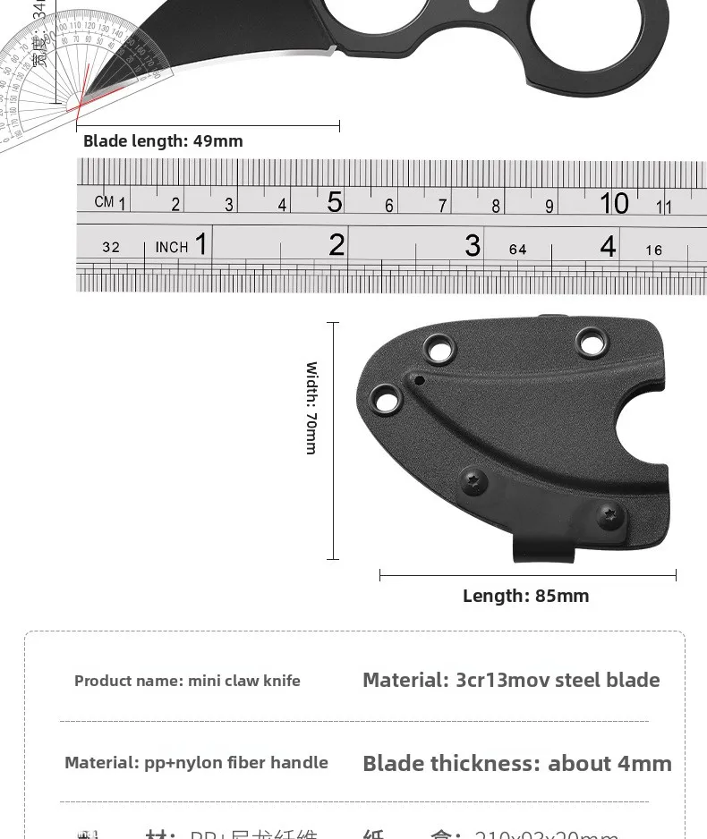 Collares de collar con mini cuchillo de garra, cuchillo de unboxing, cuchillo EDC para exteriores, cuchillo afilado de bolsillo