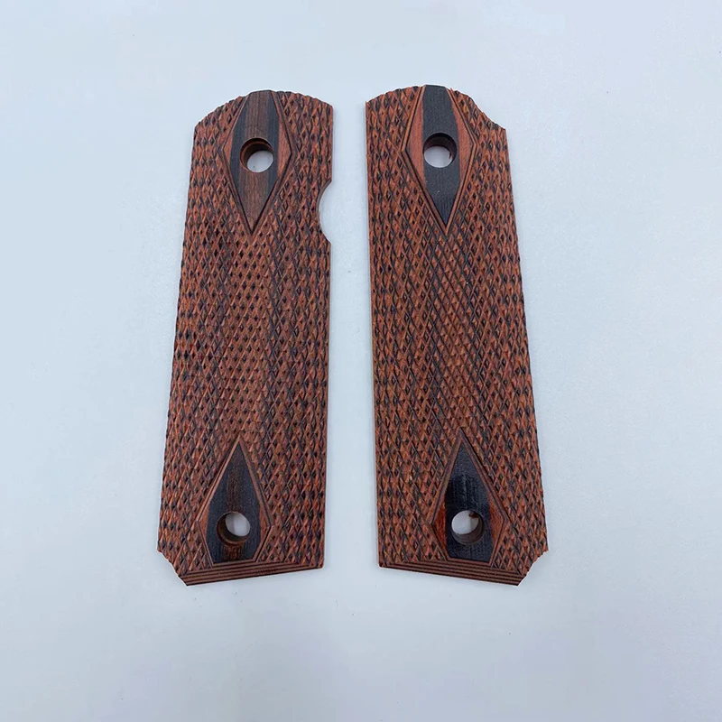 1 par de parches de mango de agarre con patrón de diamante de madera de color para modelos 1911