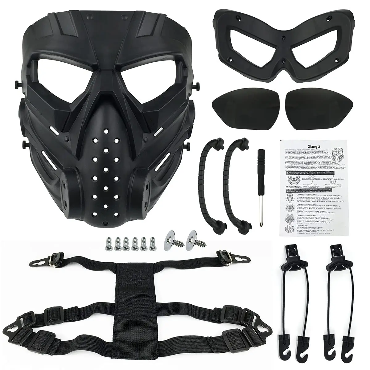 ➤ Máscara de plantilla: la gran cantidad de orificios de permeabilidad al aire de la plantilla garantizan la transpirabilidad. ¡Resistencia al impacto de más de 850FPS! Resistencia perfecta al impacto de BB. Envoltura de esponja trasera, ¡Muy cómoda! Cristales negros.