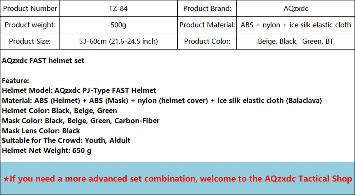 ➤ Casco FAST tipo PJ: material ABS. Con un peso de solo 0,65 KG, con ocho orificios de ventilación adicionales en la parte superior, es ideal para todo tipo de acción y combate rápidos. Para tamaño de cabeza 53-60cm (-21,6 24,5 pulgadas).