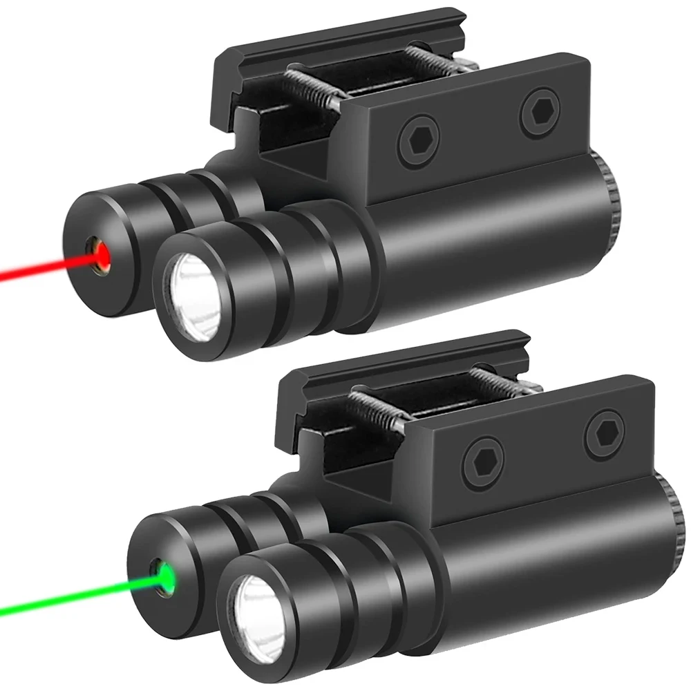 Combo de luz de arma de mira láser roja y verde para pistola de Rifle, Mini mira láser de punto rojo, luz de pistola de arma LED, linterna estroboscópica, accesorios de caza