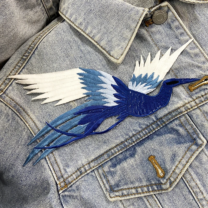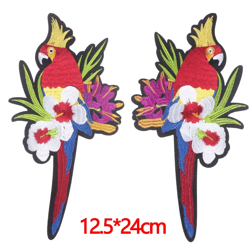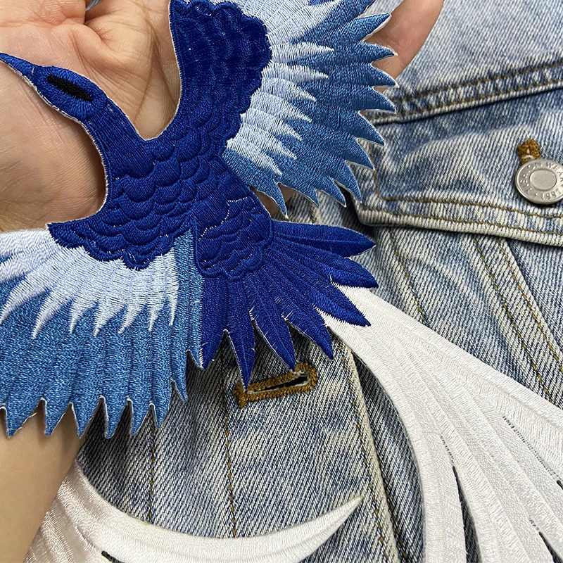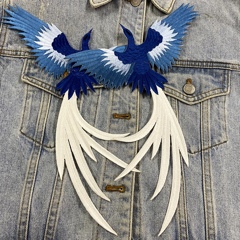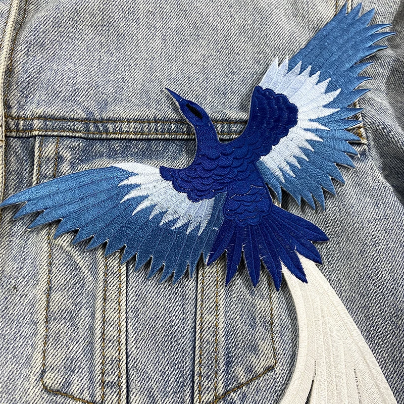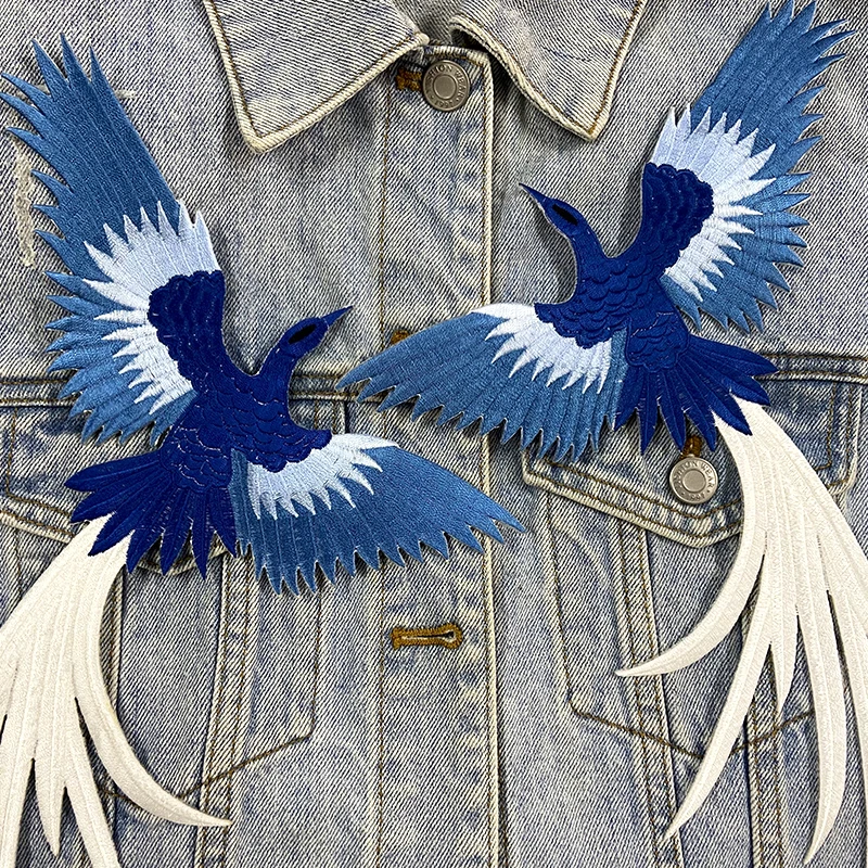 Combinación de parches para planchar en la ropa, bordado de pájaros Phenix azul Azure, flor, pescado, Parche de costura, 1 par