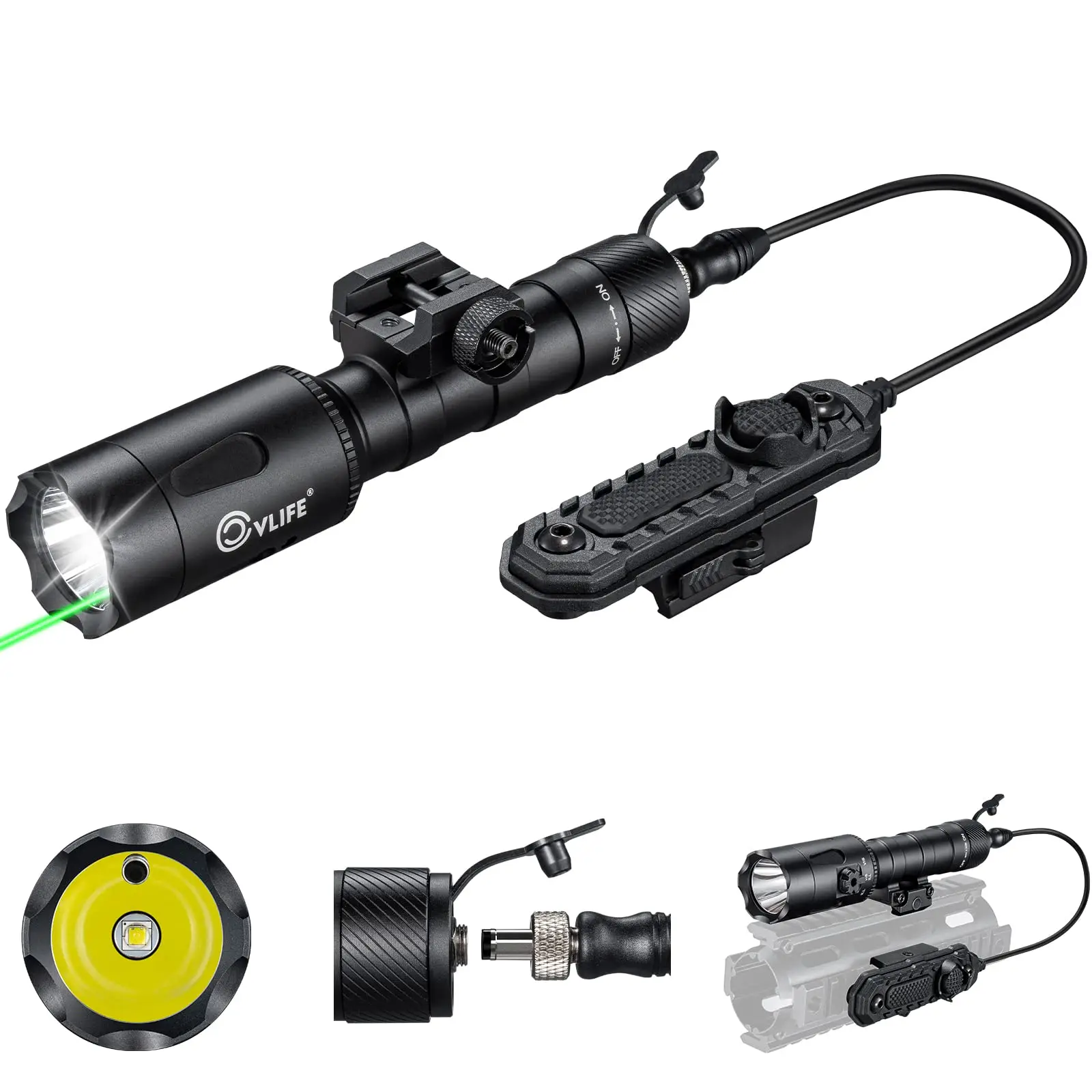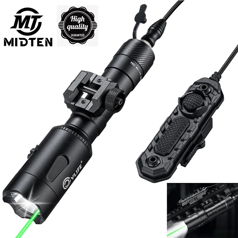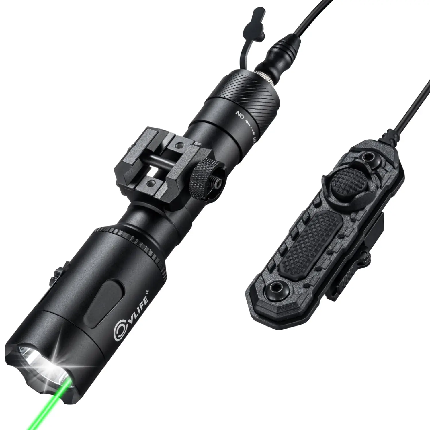 【VARIOS MODOS DE ILUMINA】 Este Combo láser de linterna de rifle está equipado con una nueva palanca selectora de modo para elegir entre solo luz blanca, solo haz verde o combo de luz láser. A través del interruptor giratorio en la parte inferior, puede cambiar entre luz estroboscópica y luz constante.