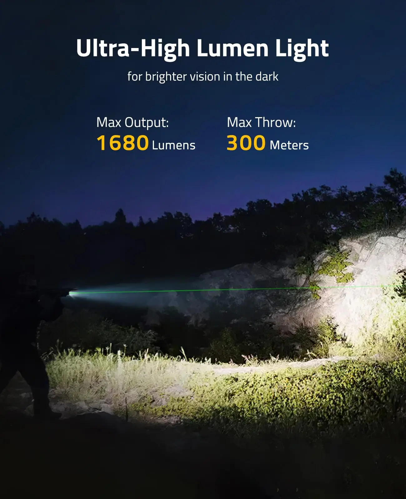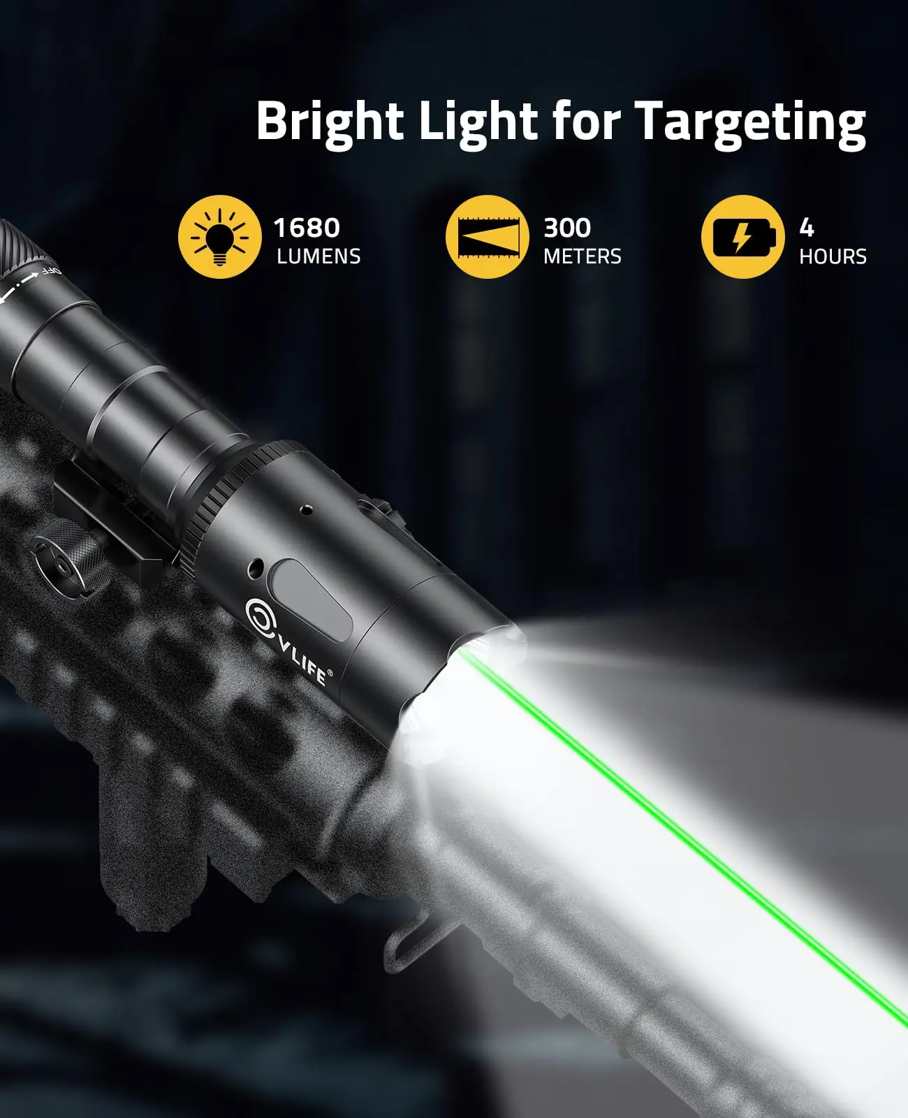 【LUZ BRILLANTE】La Luz de rifle recargable CVLIFE tiene una luz real de 1680 lúmenes y una distancia de haz de luz táctica de 300 metros. Esta luz de arma ilumina su objetivo con un brillo increíble, lo que permite una visibilidad clara en cualquier entorno. La duración de la batería es de hasta 4 horas, dura más que otras linternas similares.