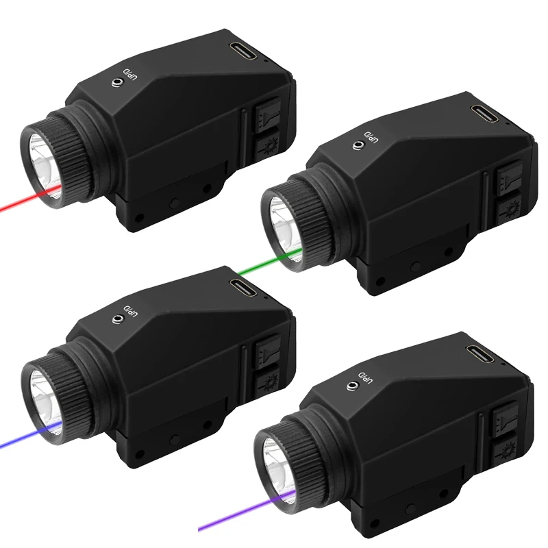 2. 【Múltiples modos tácticos】 El combo de haz verde y luz LED blanca de 500 lm ofrece modos estable/estroboscópico; solo haz; Luz de pistola fija/estroboscópica + haz.
