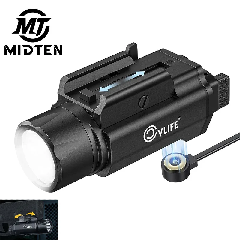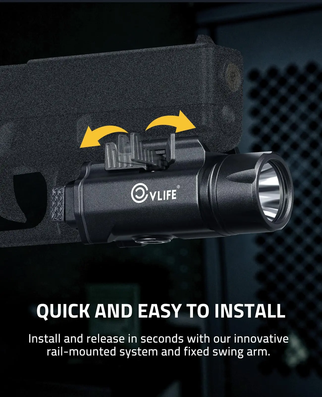 【LUZ MÁS BRILLANTE】: La luz de pistola CVLIFE emite una luz súper brillante de 1500 lúmenes reales con una distancia de haz de hasta 200 metros.Esta luz para pistola es más luminosa que otras linternas similares, lo cual es perfecto para defensa del hogar, caza, iluminación exterior, uso diurno y nocturno, etc.