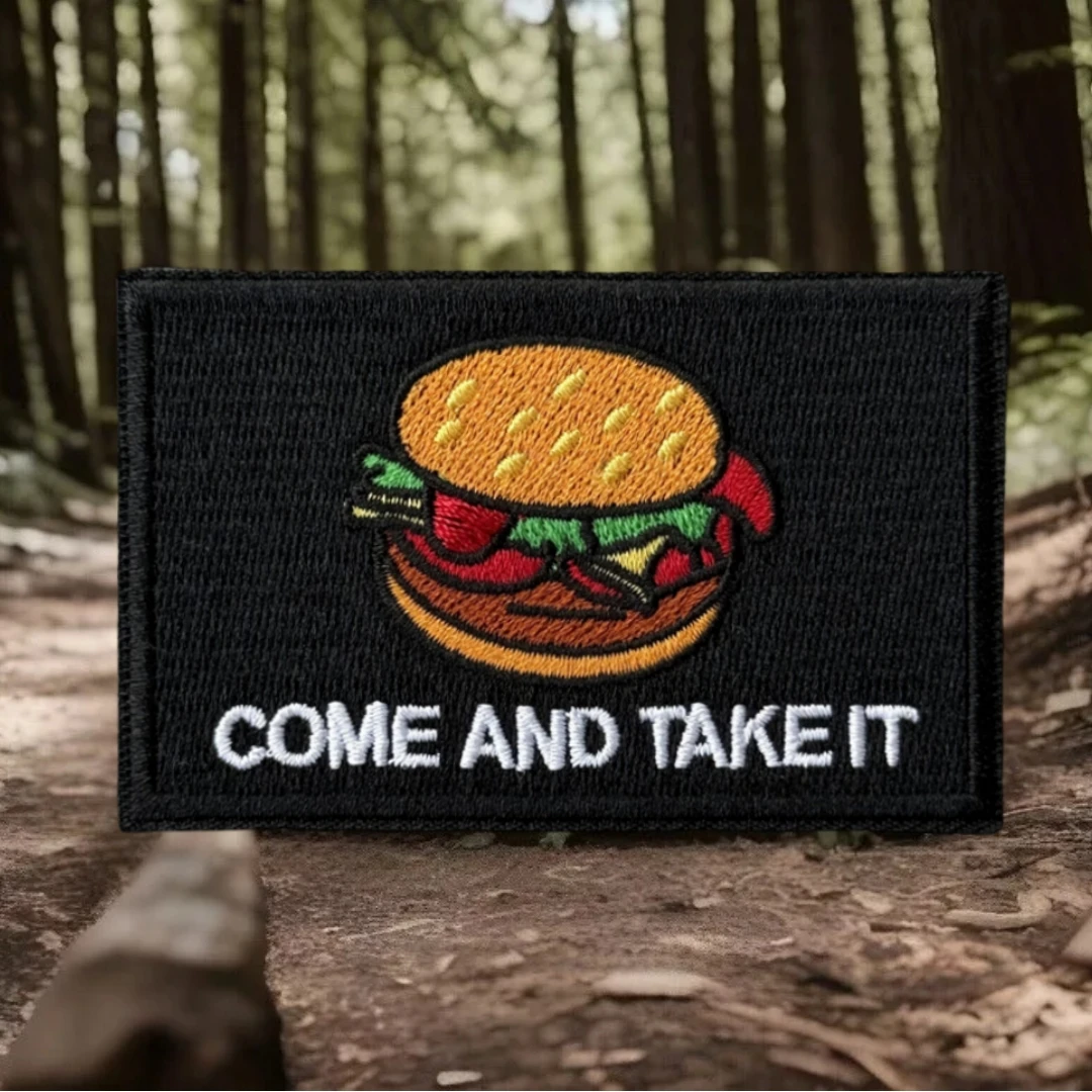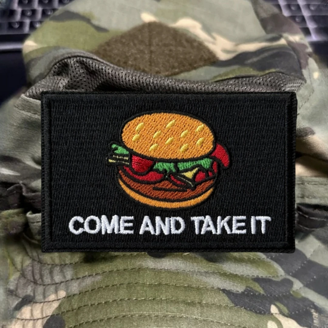 Come and Take It-Parche de hamburguesa, insignia de moral táctica, pegatina para mochila del ejército militar, parches bordados con gancho para ropa