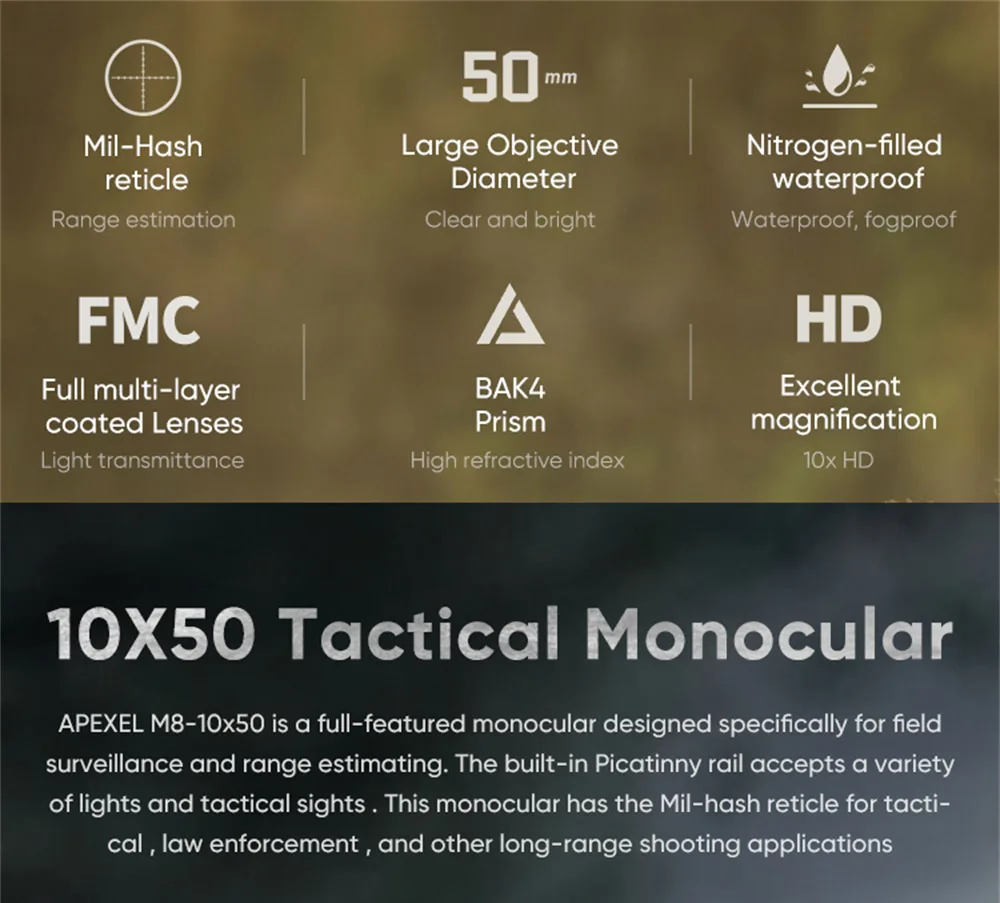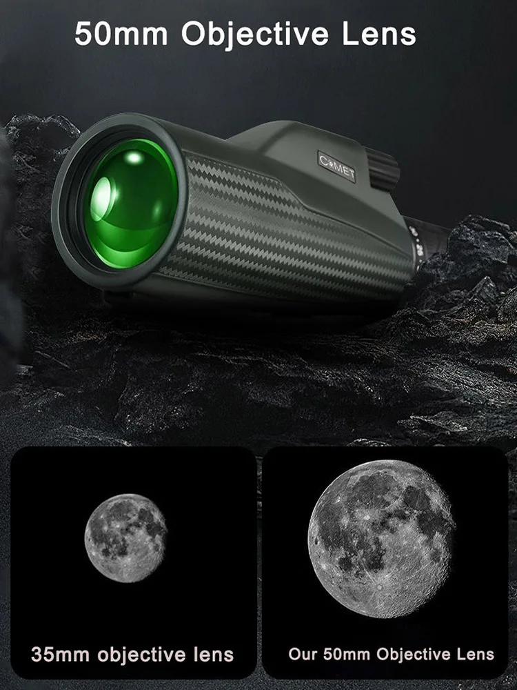 3.IPX7 resistente al agua lleno de nitrógeno, mayor calidad: el monocular 10X50 proporciona protección impermeable a prueba de niebla en cualquier clima y entorno, el cuerpo blindado de goma fortalece su idea de durabilidad.