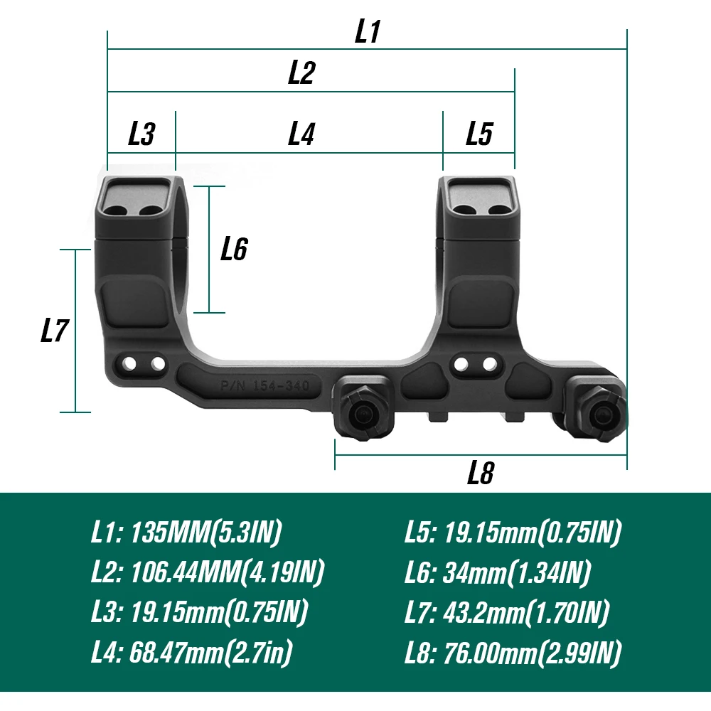 This variant of C1 Modular Mount is 1.54” which is the common height of in-line Night Vision Devices and commonly used in precision applications. For shooters who prefer a lower and more optimum cheek-weld while still maintaining direct pass-through of Night Vision Devices. Made from 7075-T6 aluminum Type III Hard Coat Anodized Weight 6.3 oz.