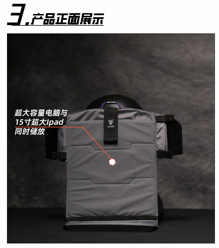 Compartimento para ordenador, mochila táctica, accesorios, almohadilla de protección, forro interior, funda para Notebook, 15l