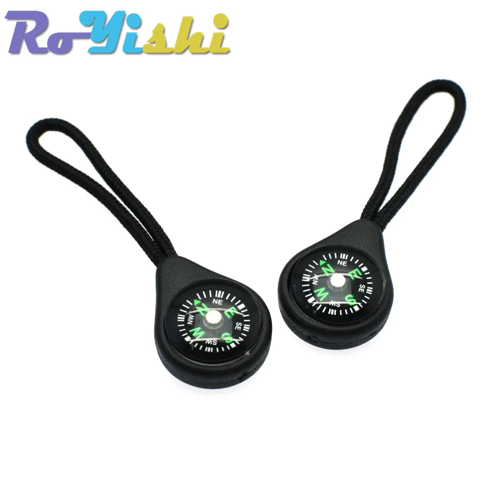 Compass Zipper Pull con correa para mochila, traje de gimnasio, accesorios de ropa, negro, 5 unids/lote por paquete