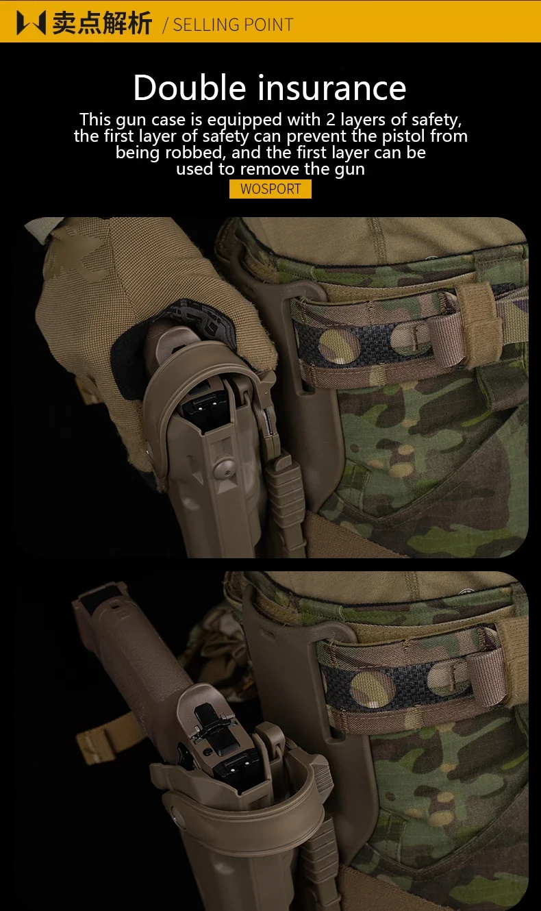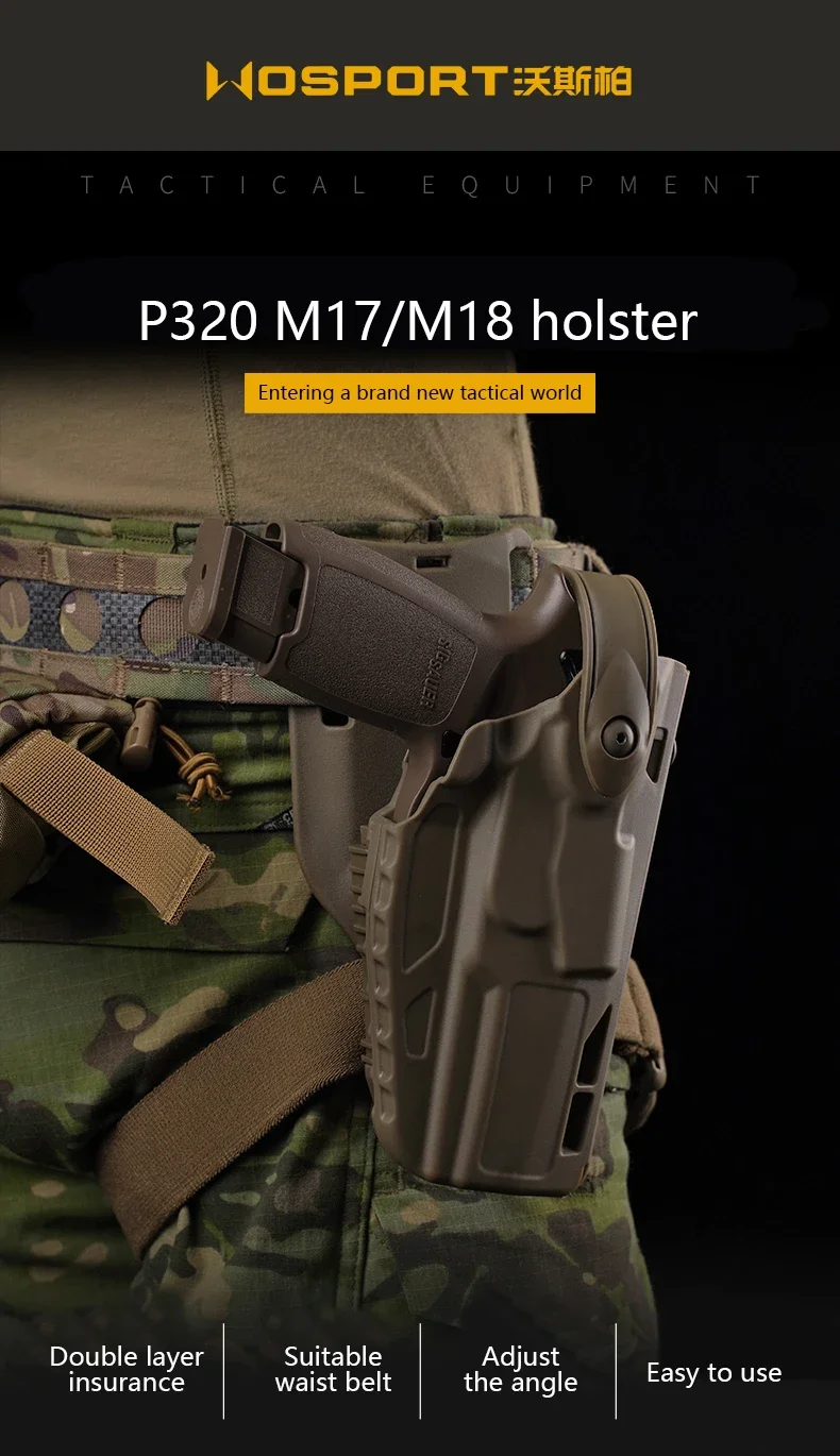 Compatible con cinturón de 2,5 pulgadas P320 M17/M18, Funda de cuero, seguro de doble capa, ángulo ajustable, chasis de equipo táctico