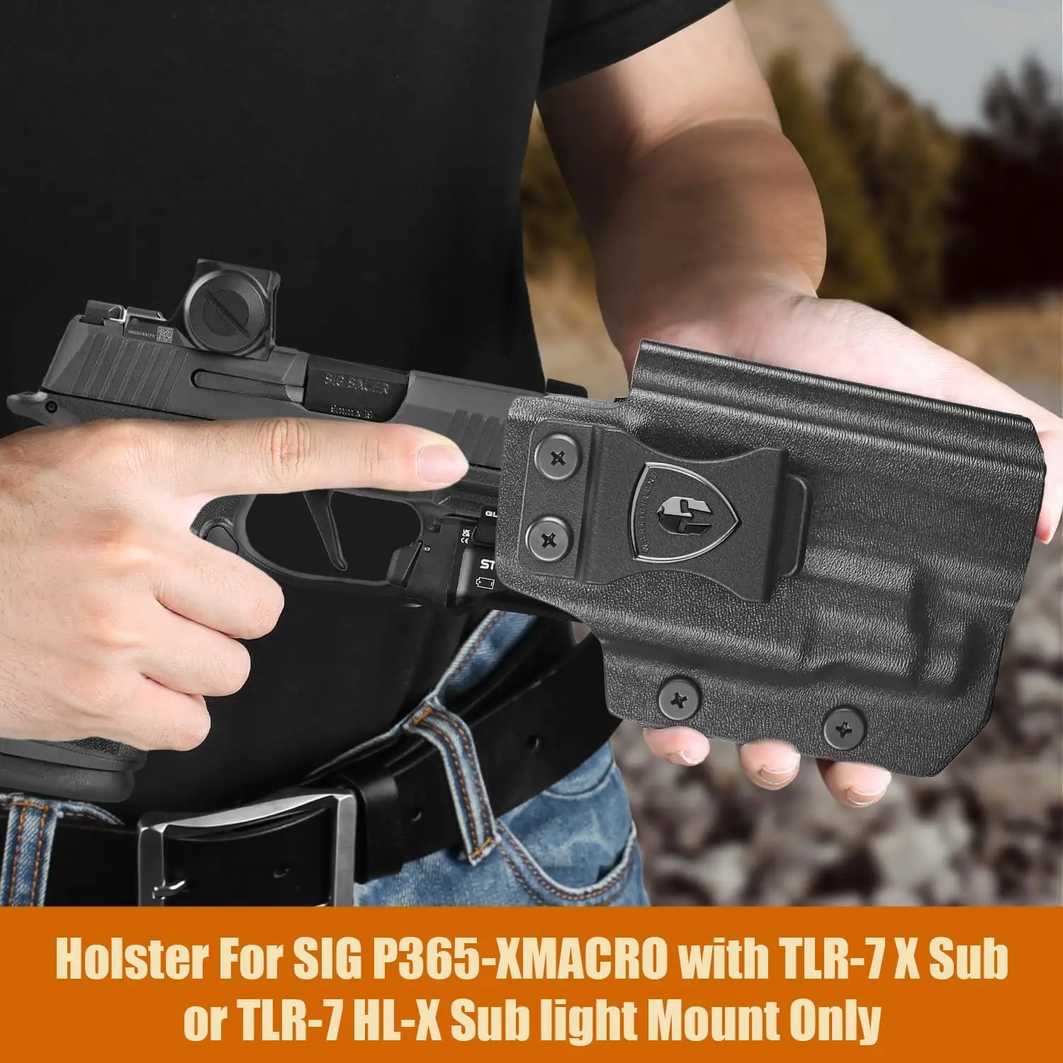 𝗖𝗼𝗺𝗽𝗮𝘁𝗶𝗯𝗹𝗲 𝗹𝗶𝘀𝘁 – Designed exclusively and solely for Sig P365-XMACRO with TLR-7 X Sub (69407) / TLR-7 HL-X Sub (69505) lights ONLY, ensuring a secure and snug fit. Right Hand only (Note: Not fit P365 / P365X /P365XL, or listed pistol without light, or other light / laser)