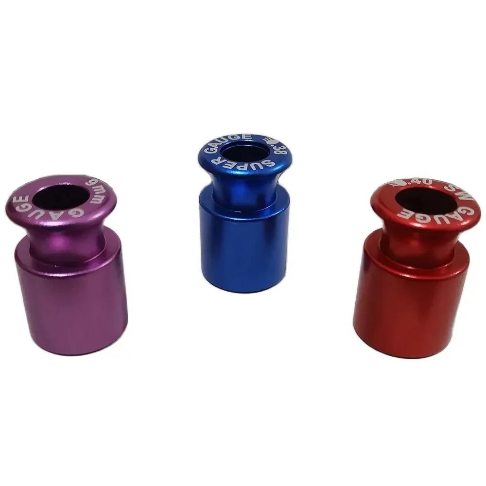 - Estas damas de munición son medidores que permiten que un recargador confirme rápidamente que sus municiones encajarán en su cámara.Simplemente deje caer sus rondas cargadas en el comprobador de munición y, si la ronda encaja en el medidor, encajará en la cámara del arma.Cada calibre está claramente grabado en el calibre.